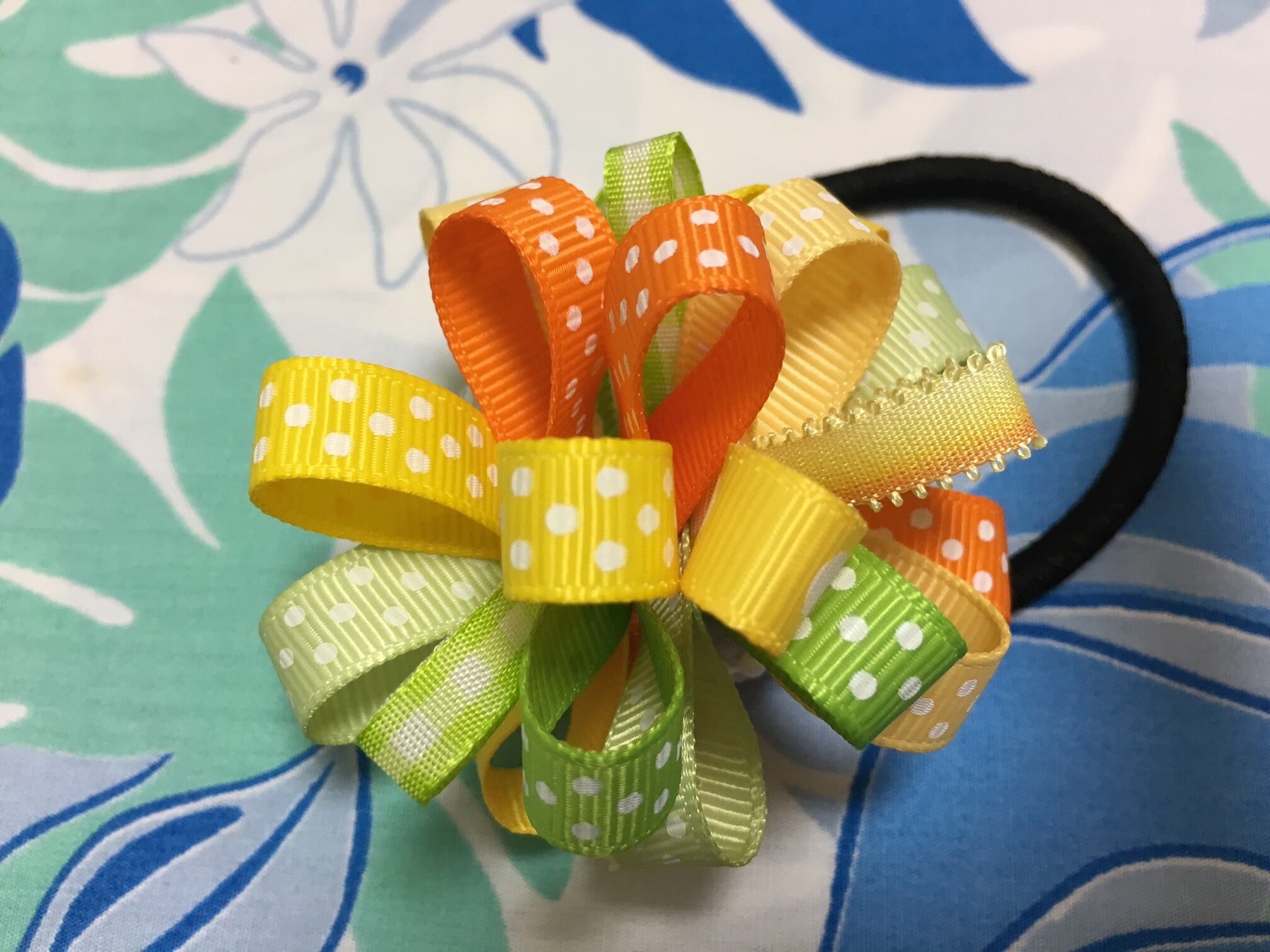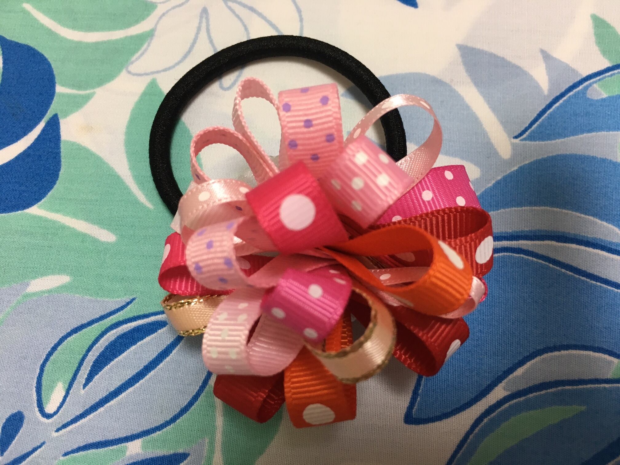 【ルービーポンポンボウヘアーゴム キット♪ハワイアンリボンレイ】