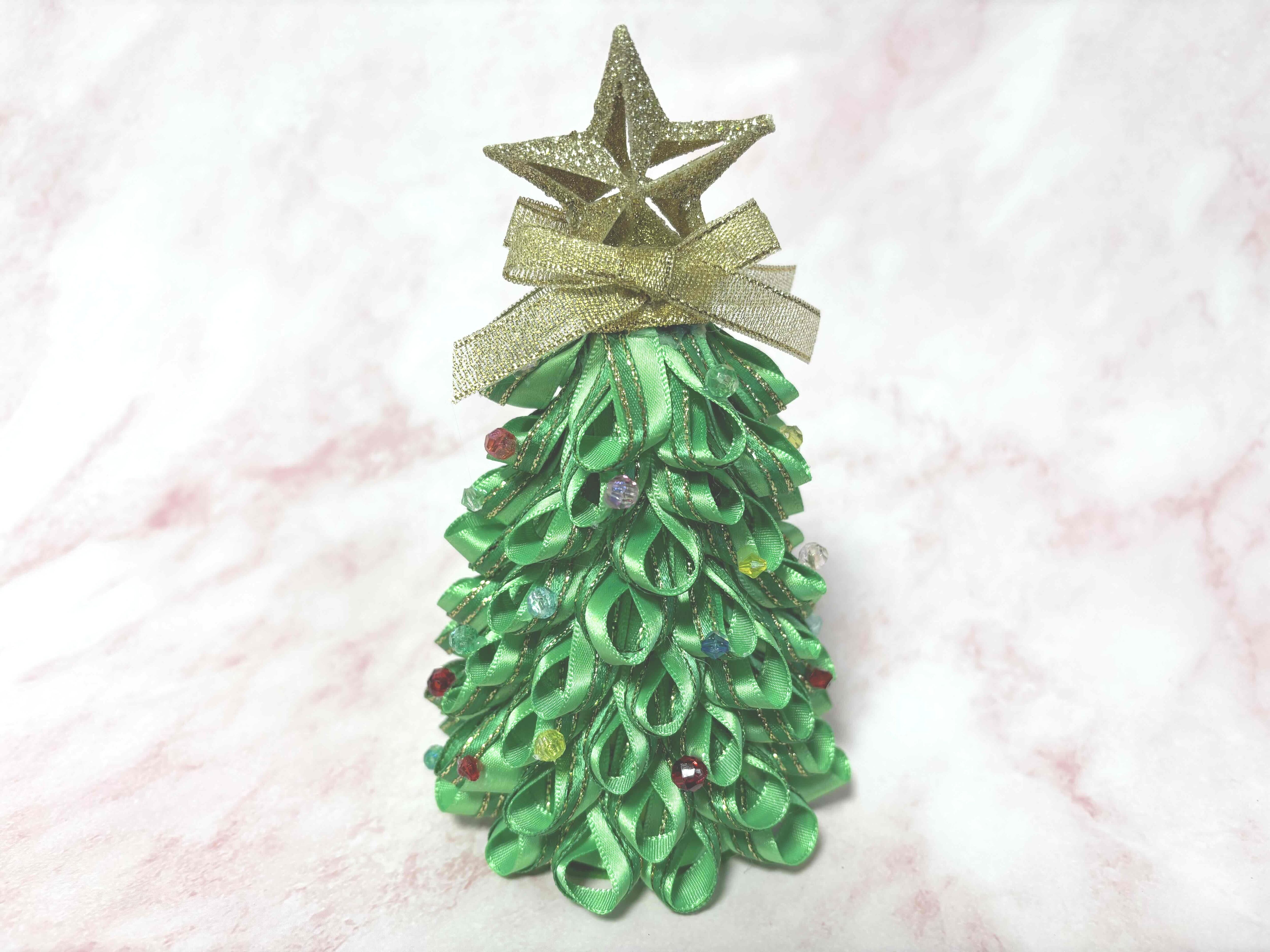 針を使用せず、両面テープとグルーガンで可愛いクリスアスツリーを作ります。