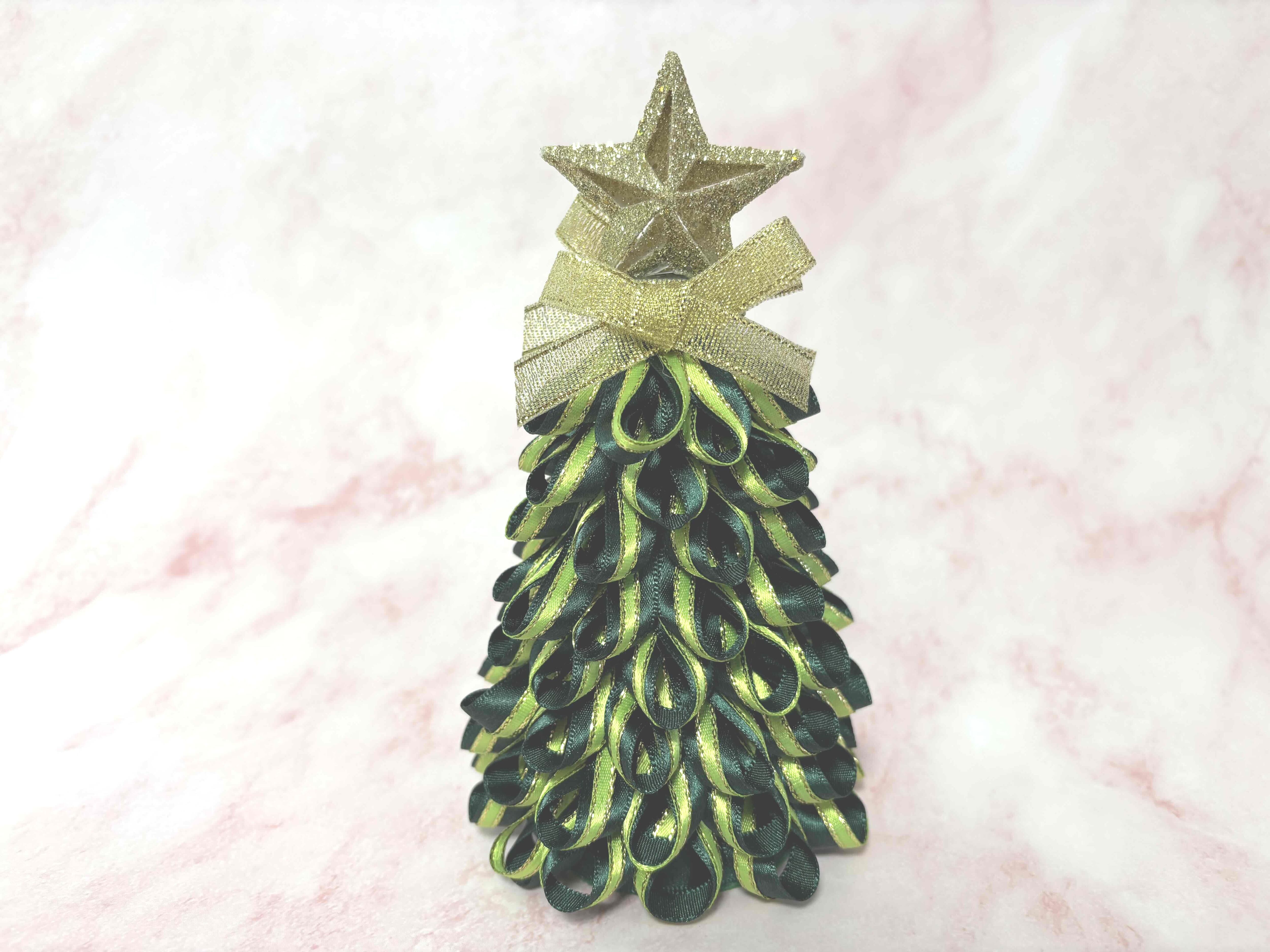 針を使用せず、両面テープとグルーガンで可愛いクリスアスツリーを作ります。