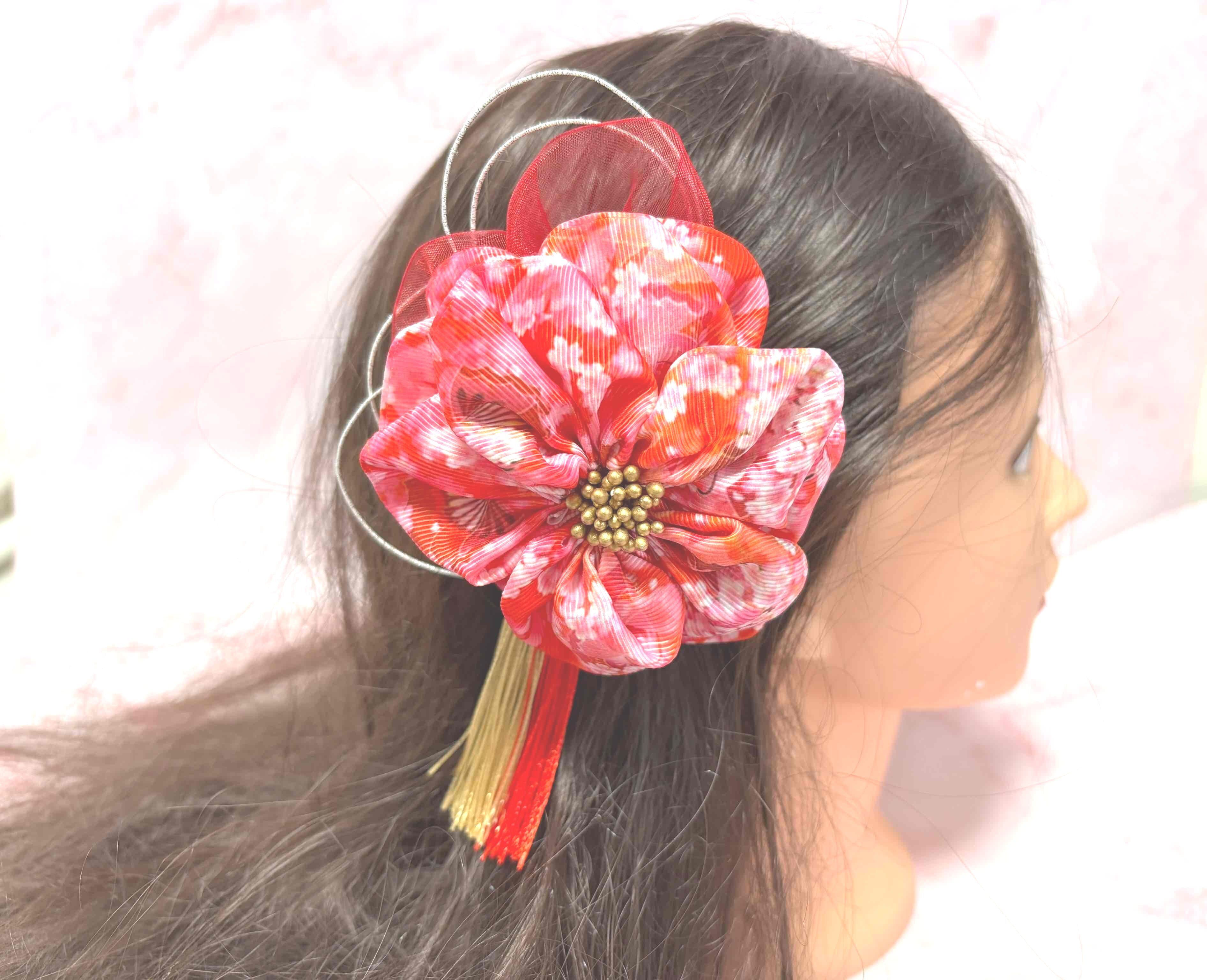 レシピなし【和柄の髪飾り(バレッタ) キット】ハワイアンリボンレイ