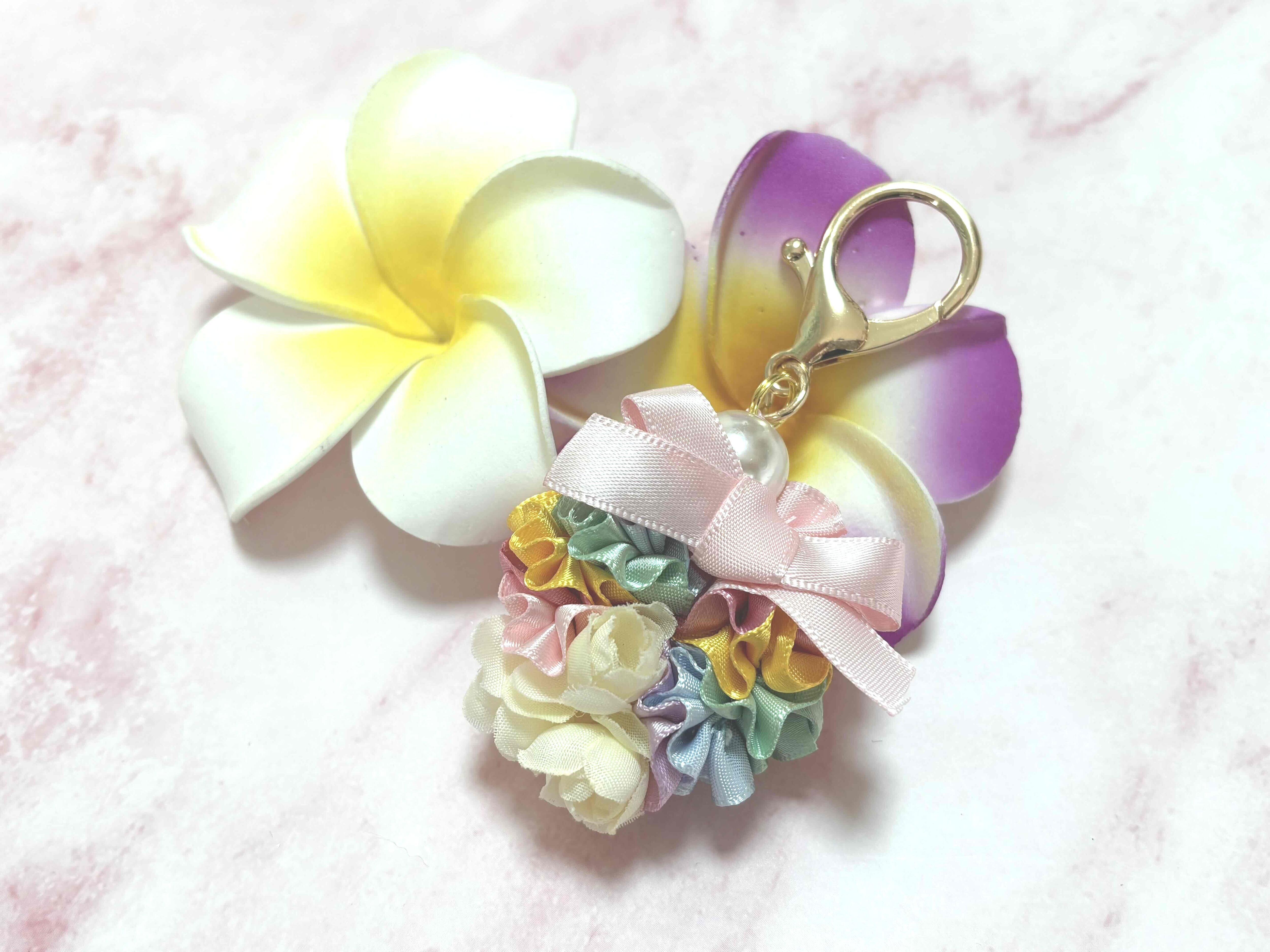 【レインボーフラワープチチャーム キット♪ハワイアンリボンレイ】です。