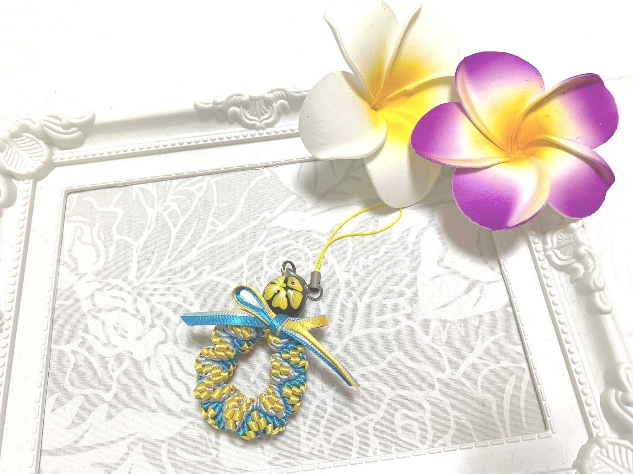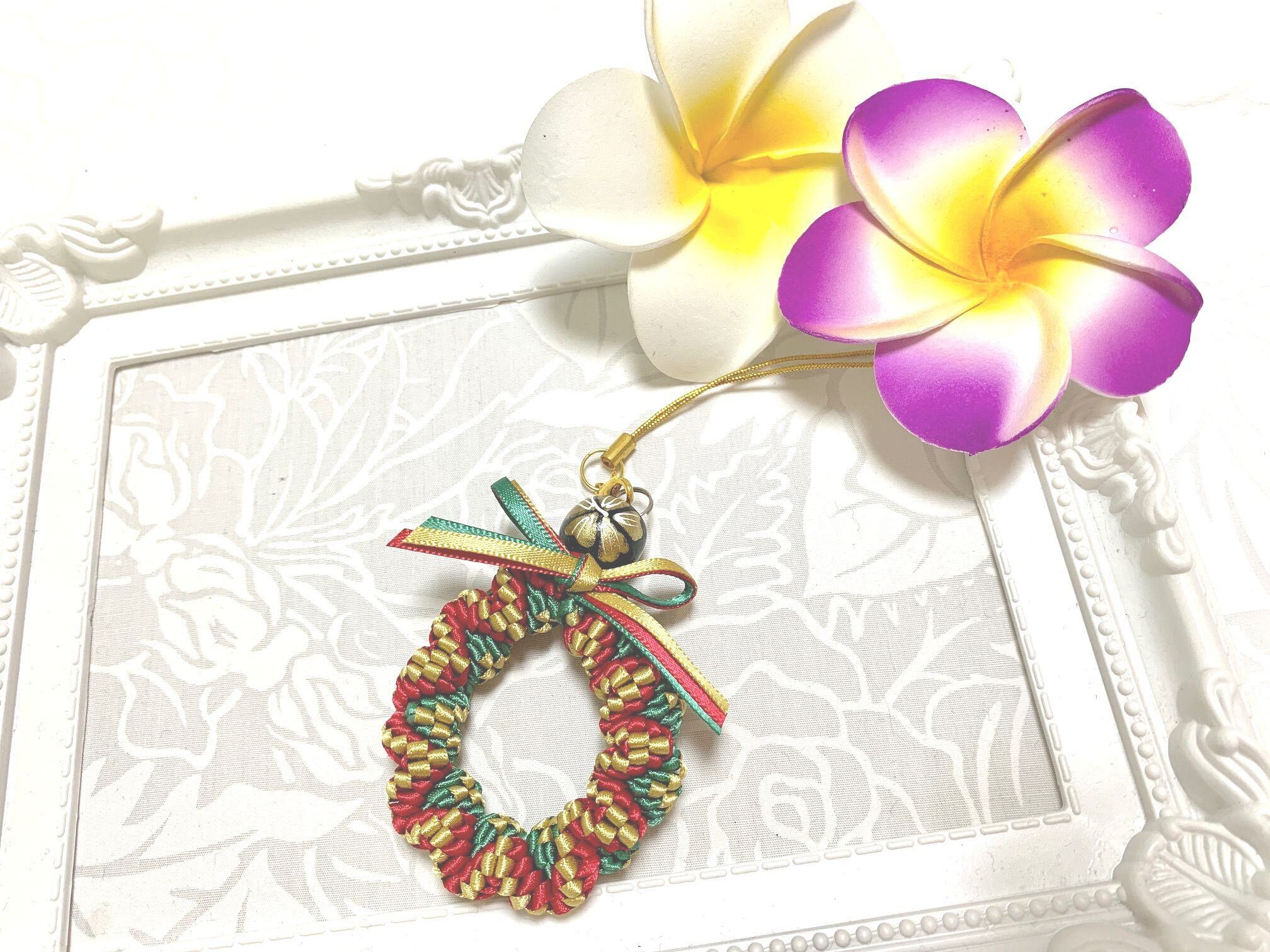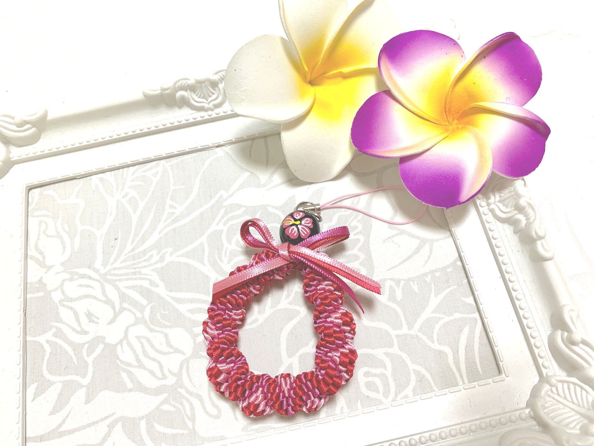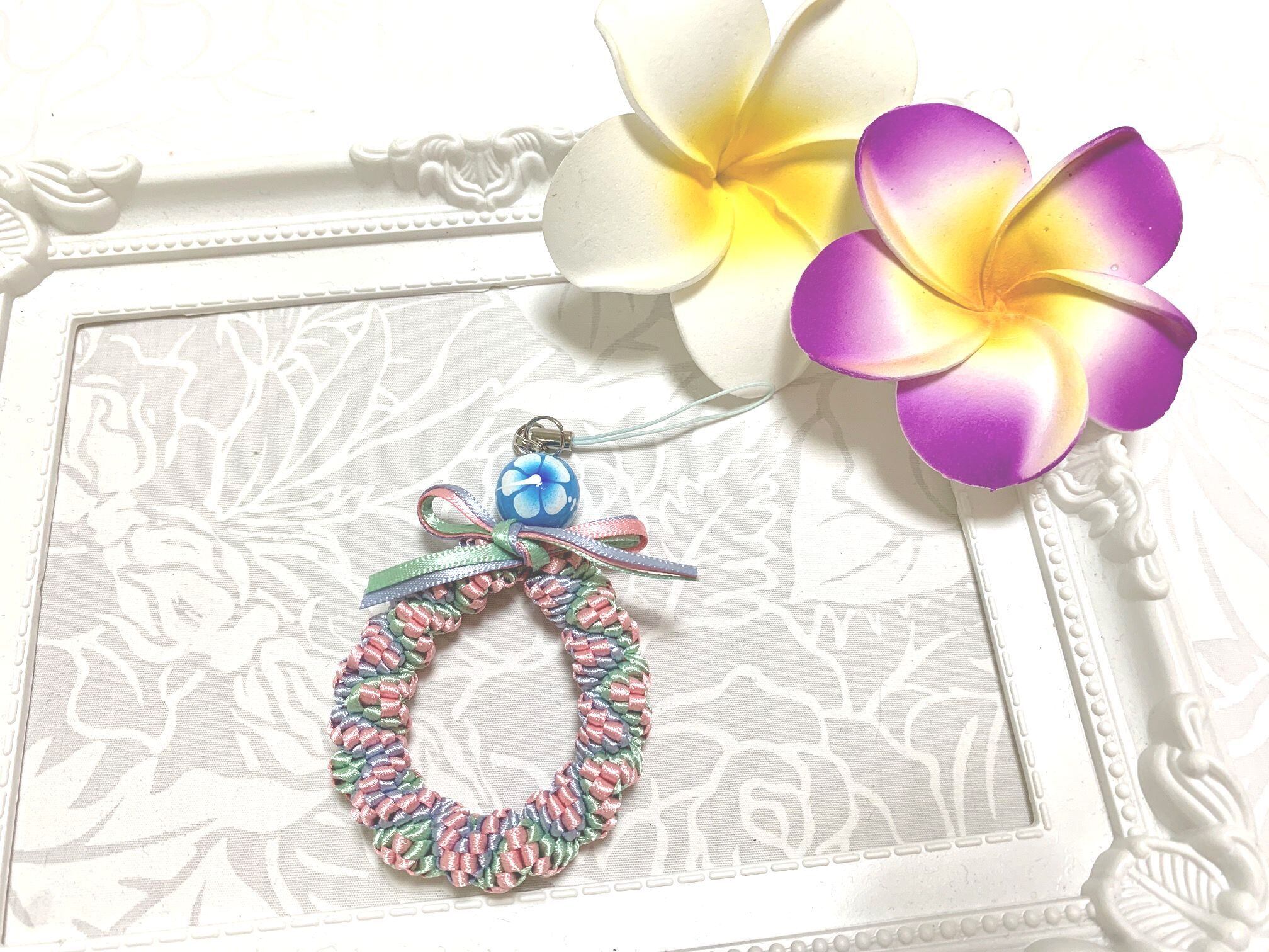 ◆リボンレイとは、レイを生花を使わず主にリボンやビーズ・造花などを使用して作るハワイアンクラフトです。レイはハワイの伝統的な装飾品で、ハワイに訪れた記念に観光客の首にかけられたり、日本ですとフラをされる方が身に着けたりするものと言えばわかりやすいかと思います。ハワイでは歓迎、誕生日、卒業式、結婚式などのお祝いにレイを贈り合います。