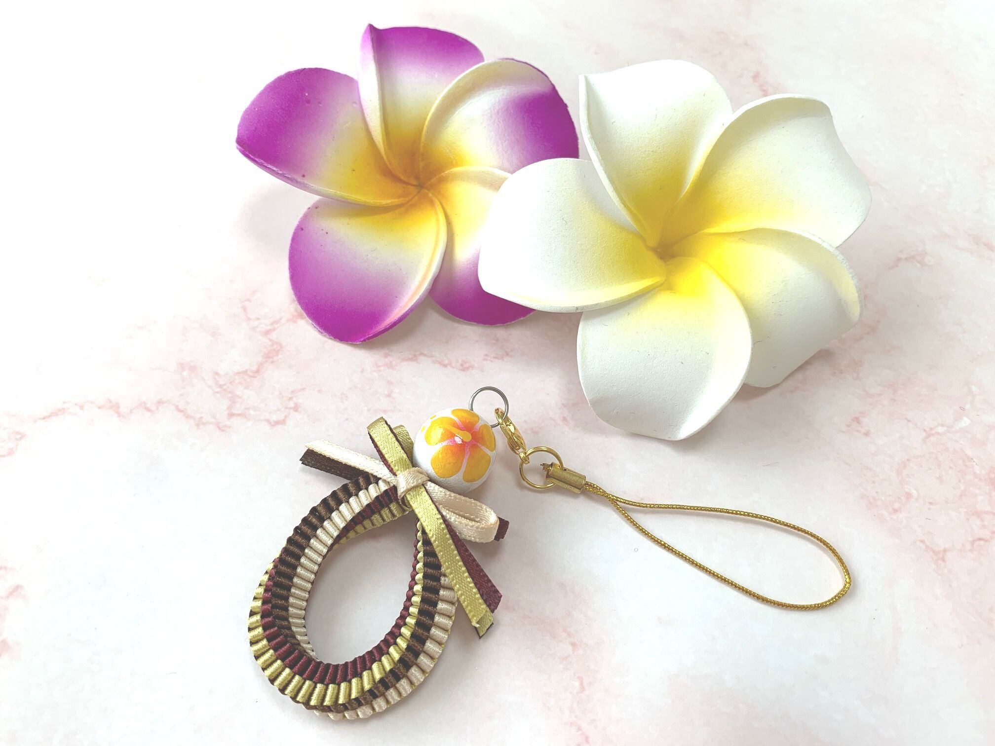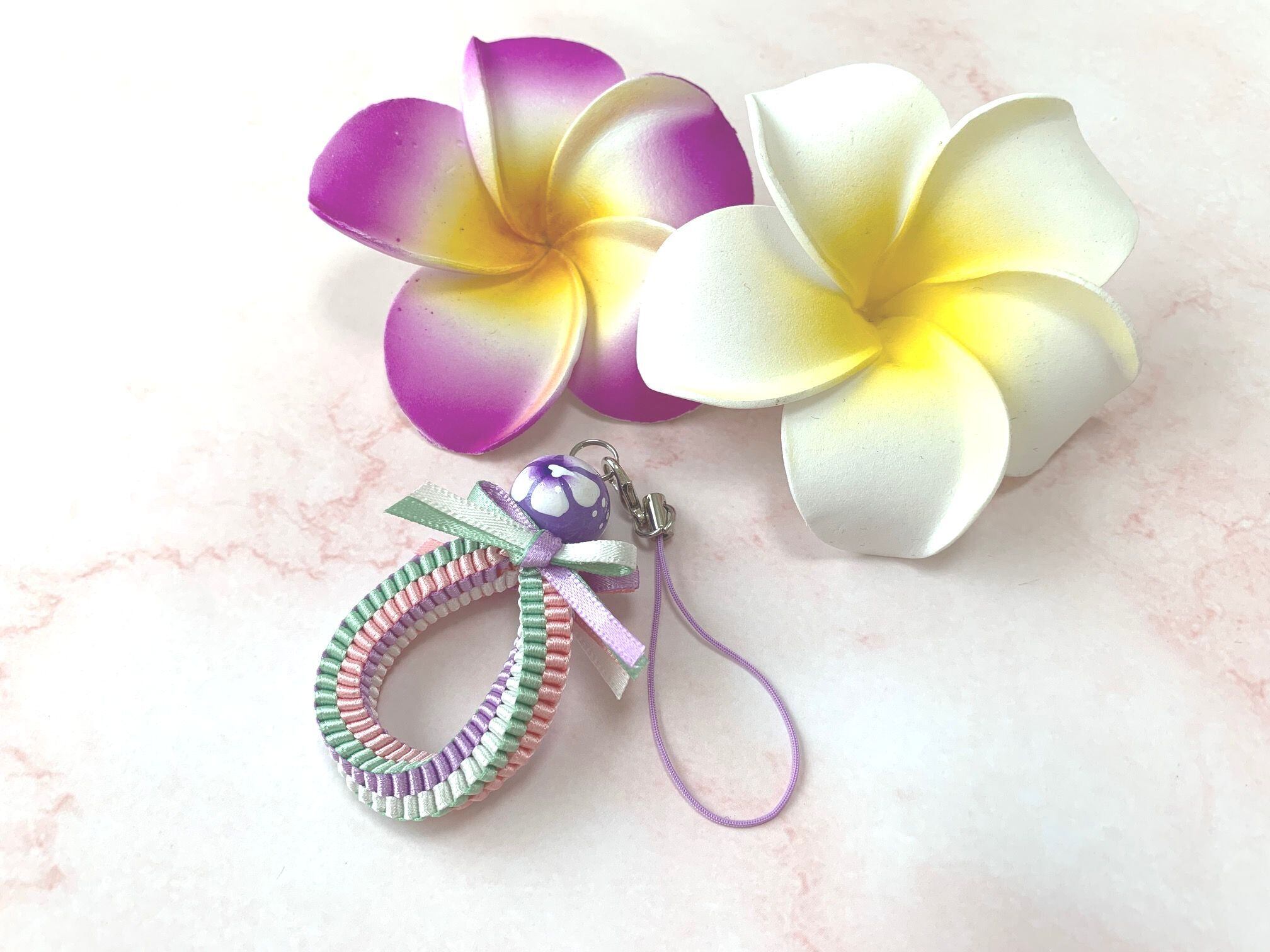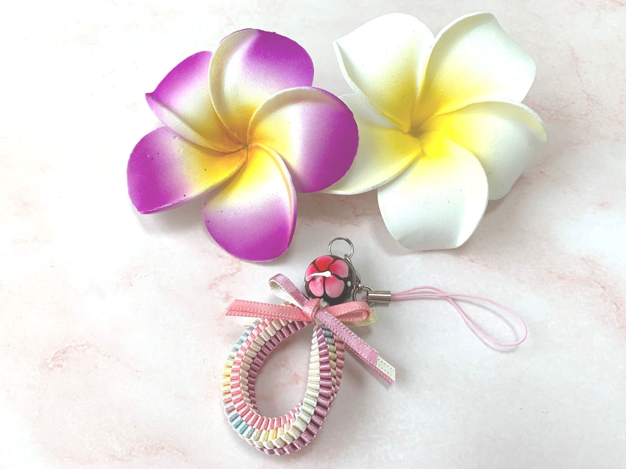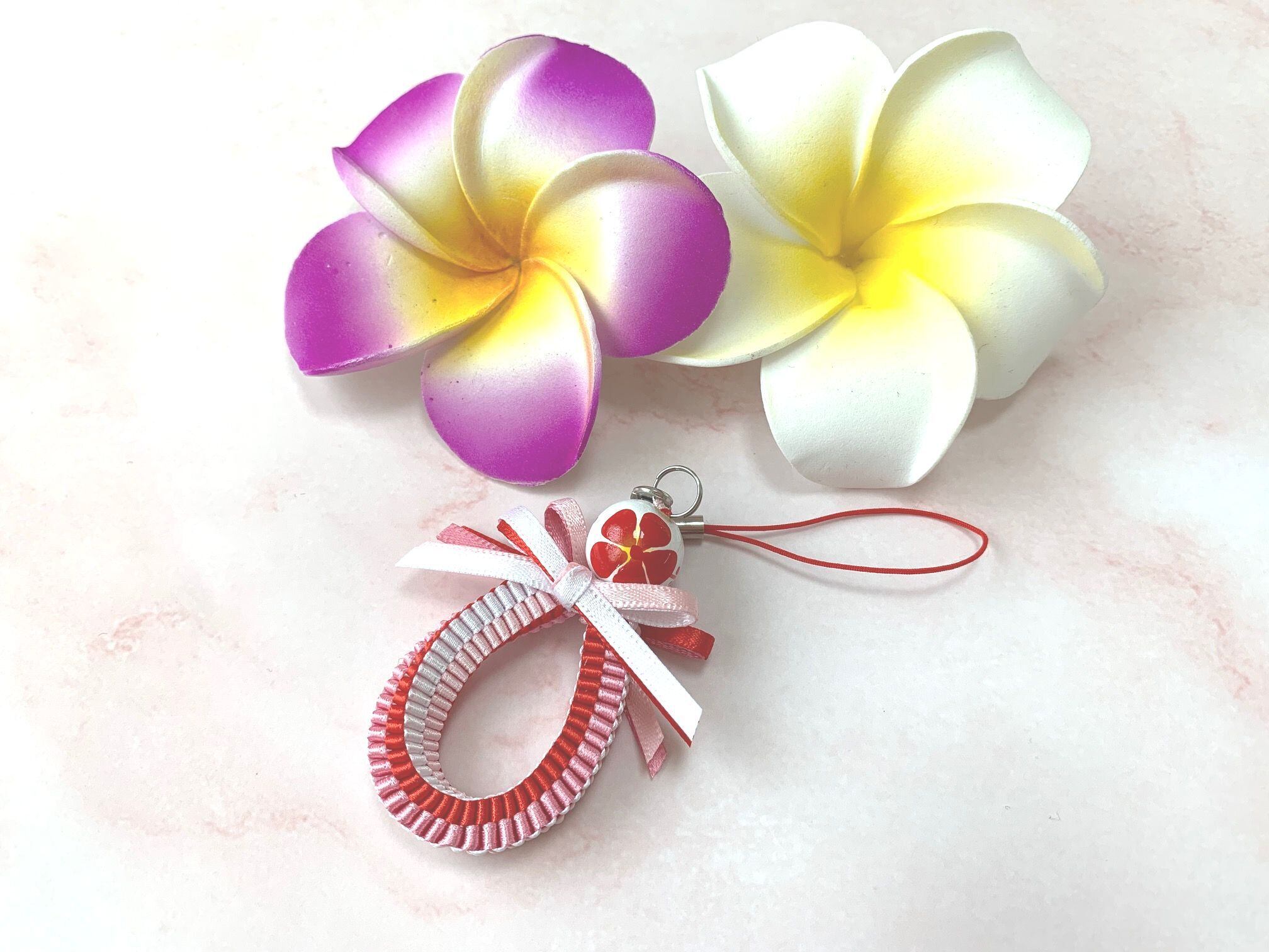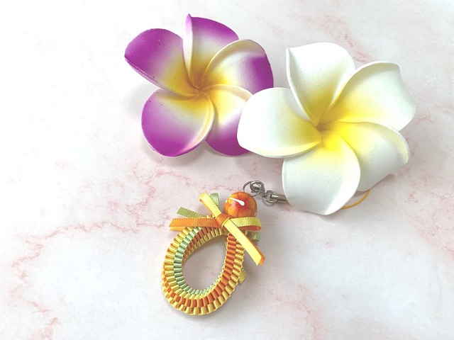 ◆リボンレイとは、レイを生花を使わず主にリボンやビーズ・造花などを使用して作るハワイアンクラフトです。レイはハワイの伝統的な装飾品で、ハワイに訪れた記念に観光客の首にかけられたり、日本ですとフラをされる方が身に着けたりするものと言えばわかりやすいかと思います。ハワイでは歓迎、誕生日、卒業式、結婚式などのお祝いにレイを贈り合います。