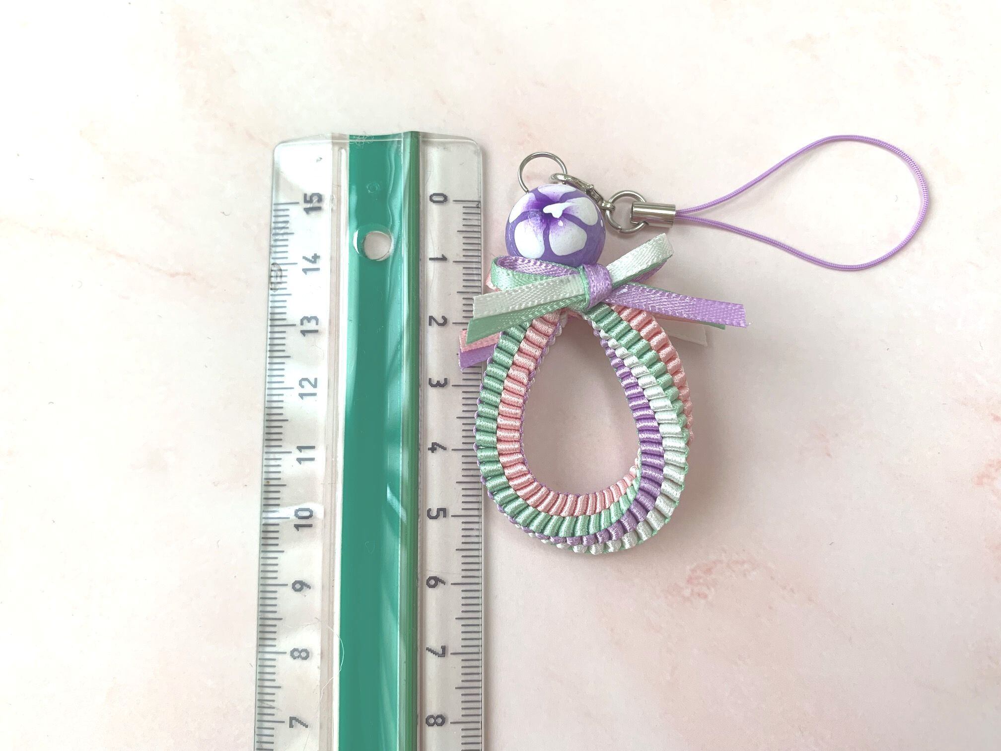 大きさは5.5~6cmくらいになる長さですが、ちょうどいい長さに調節してお作りください。