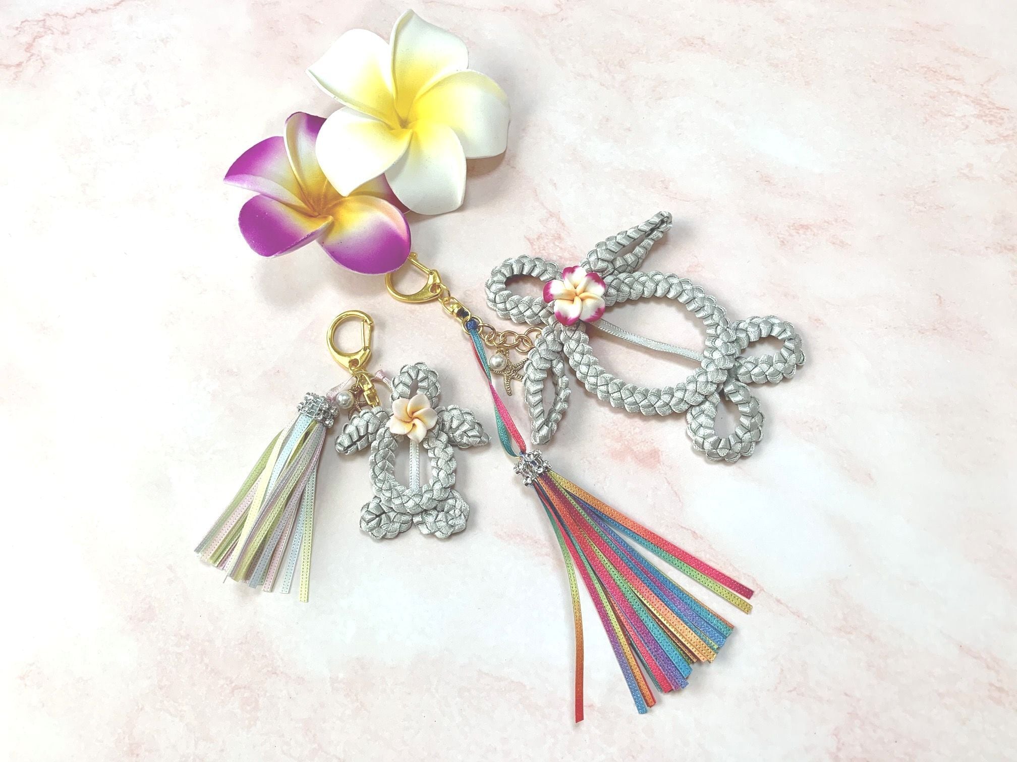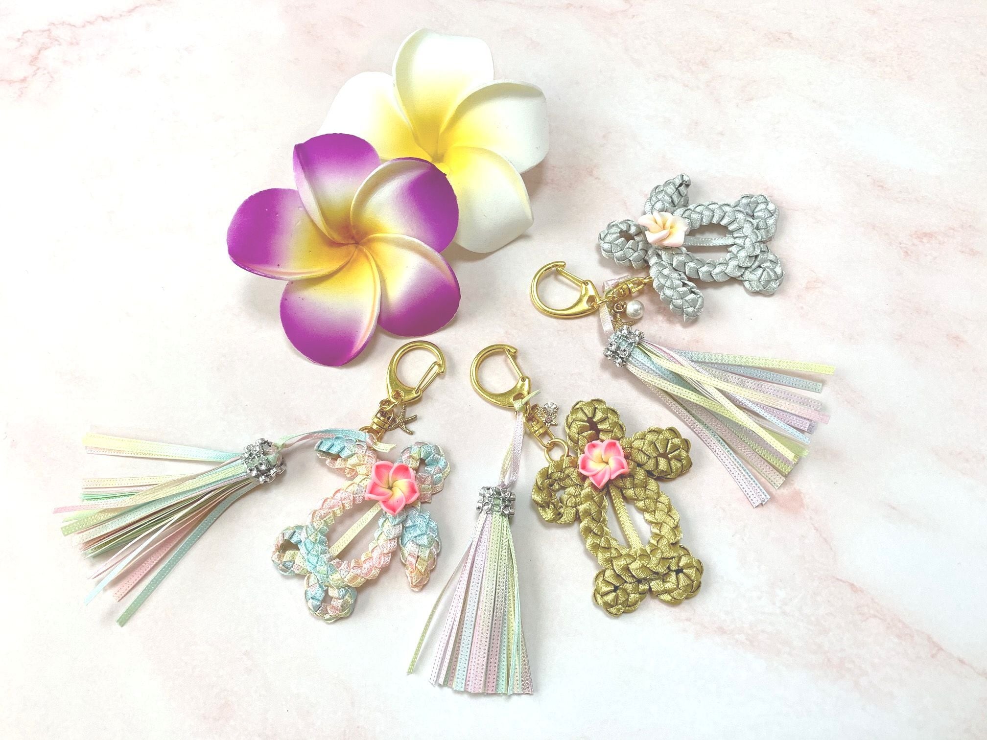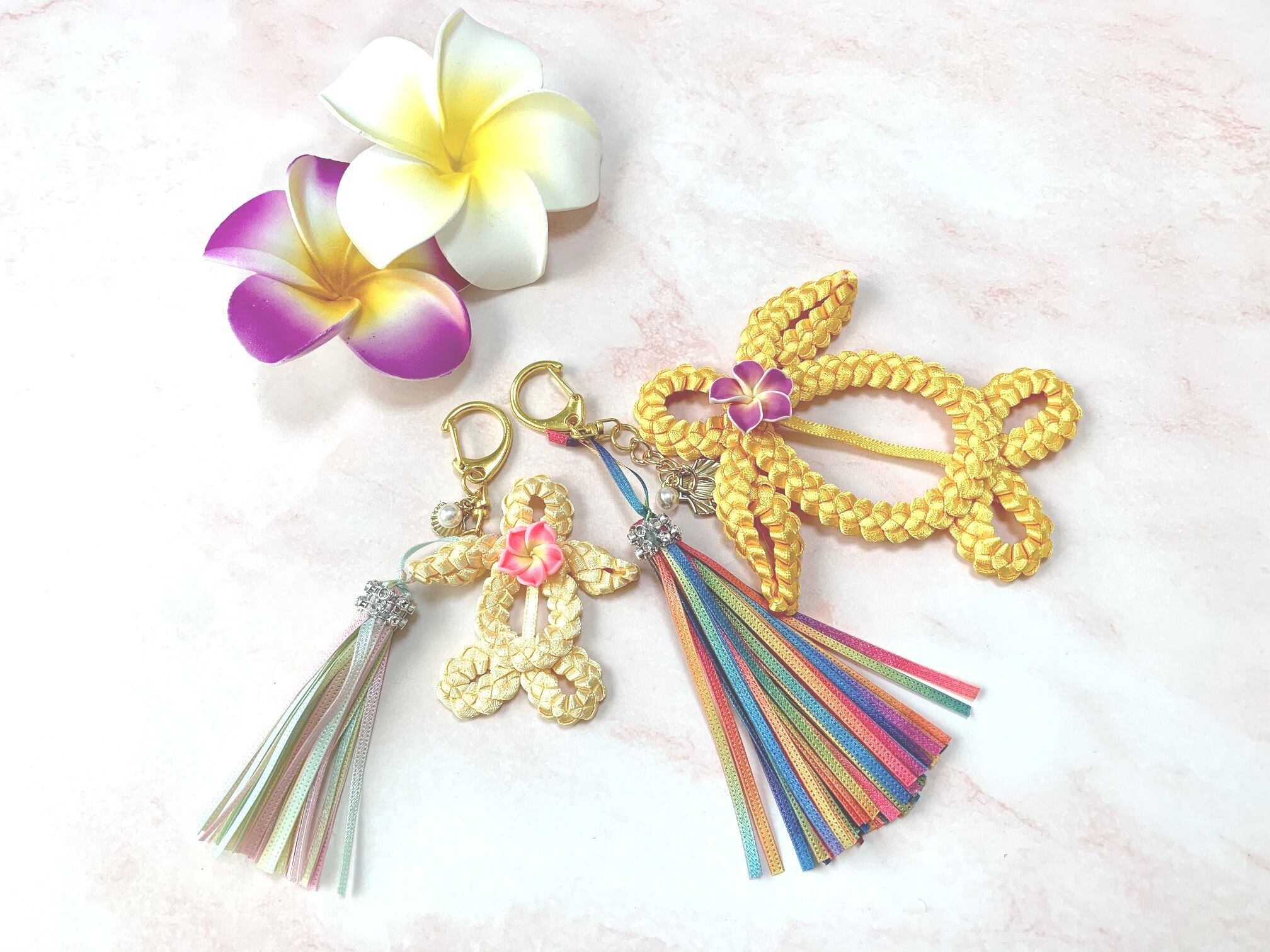 ◆リボンレイとは、レイを生花を使わず主にリボンやビーズ・造花などを使用して作るハワイアンクラフトです。