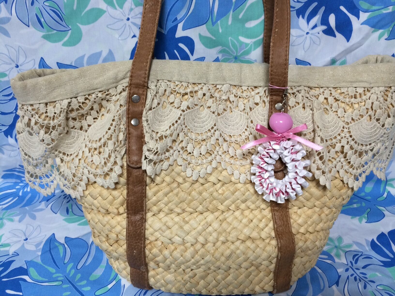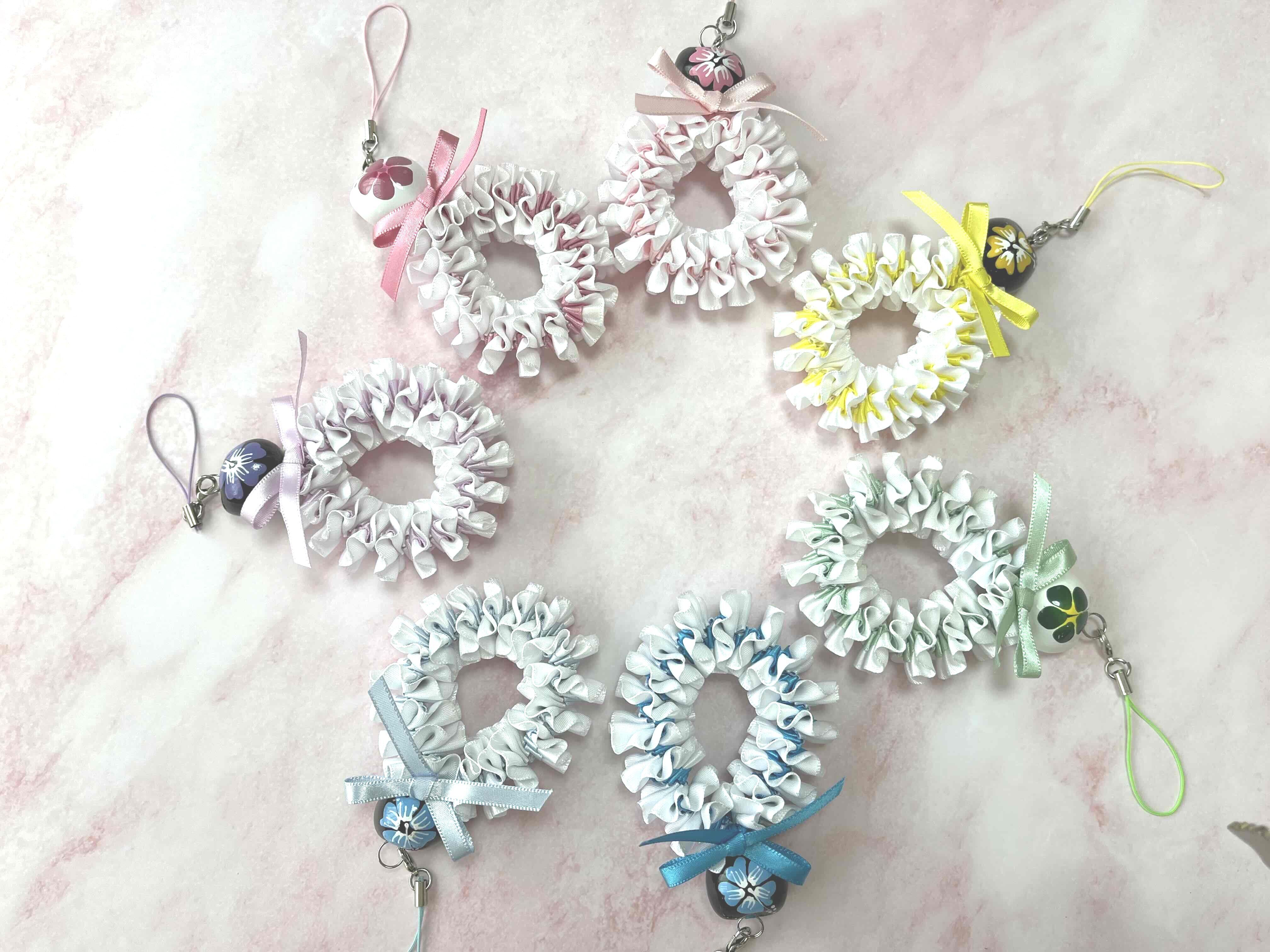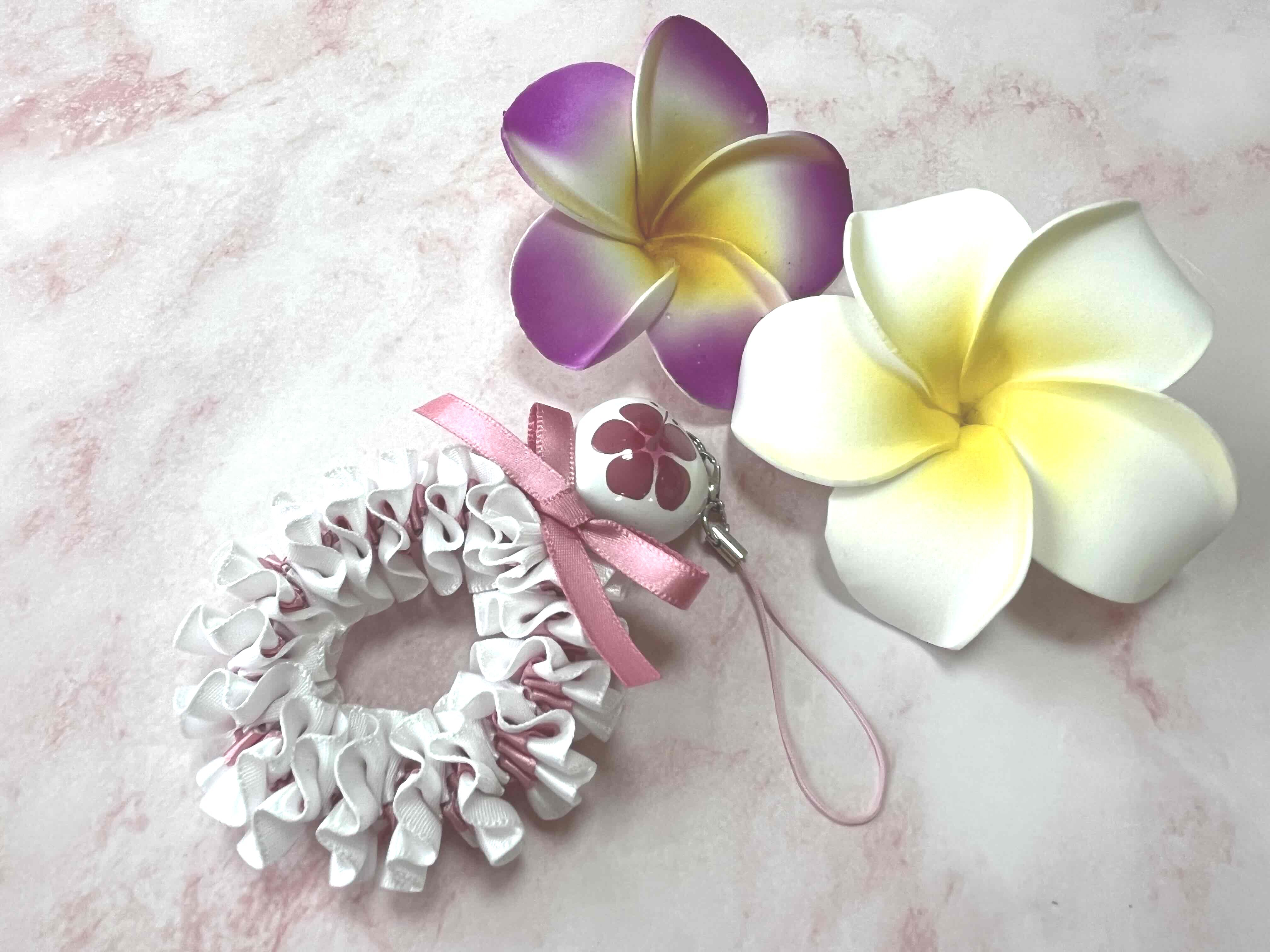 ハワイアンリボンレイ【プルメリアストラップ】キットです。