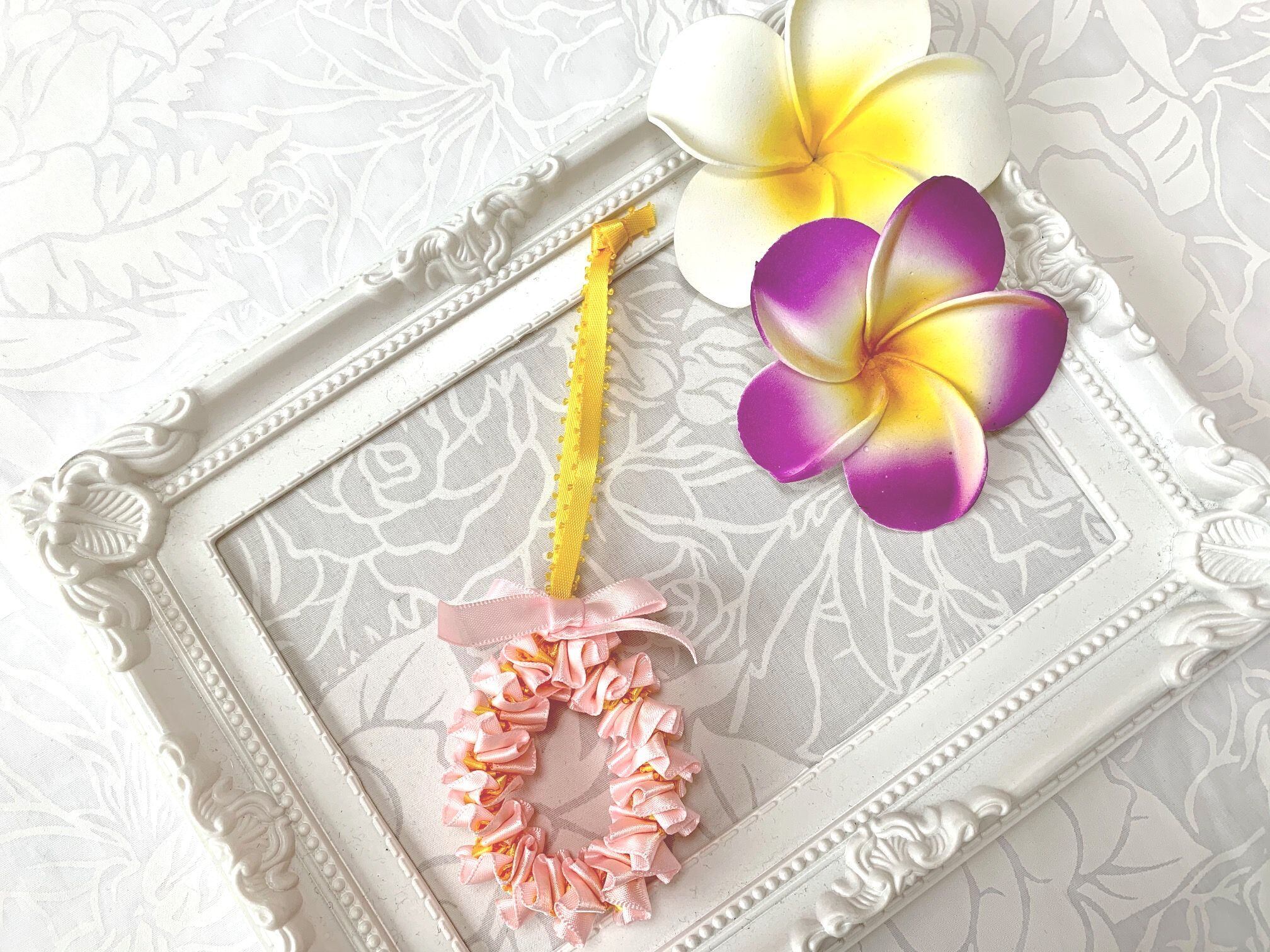 ◆リボンレイとは、レイを生花を使わず主にリボンやビーズ・造花などを使用して作るハワイアンクラフトです。