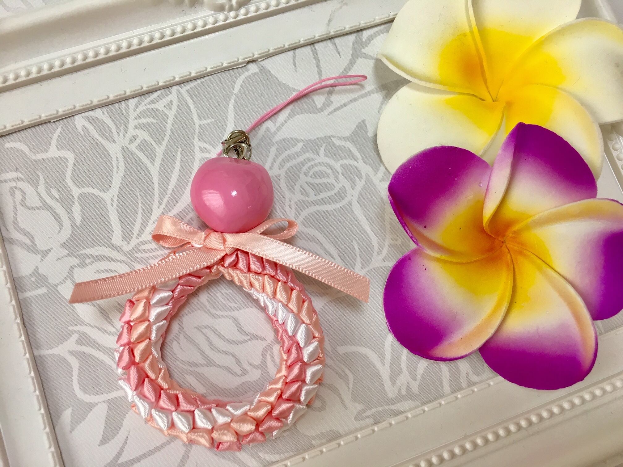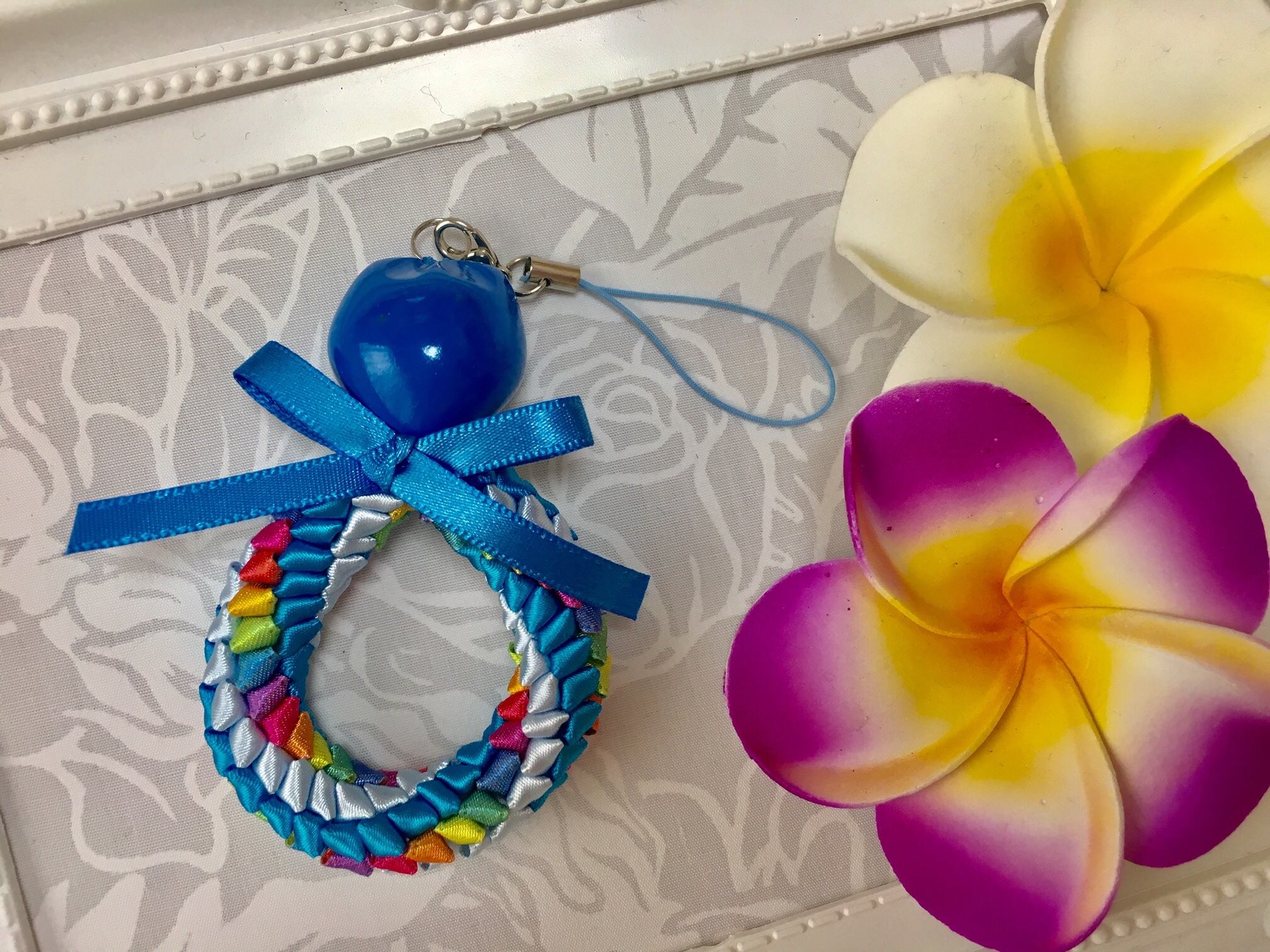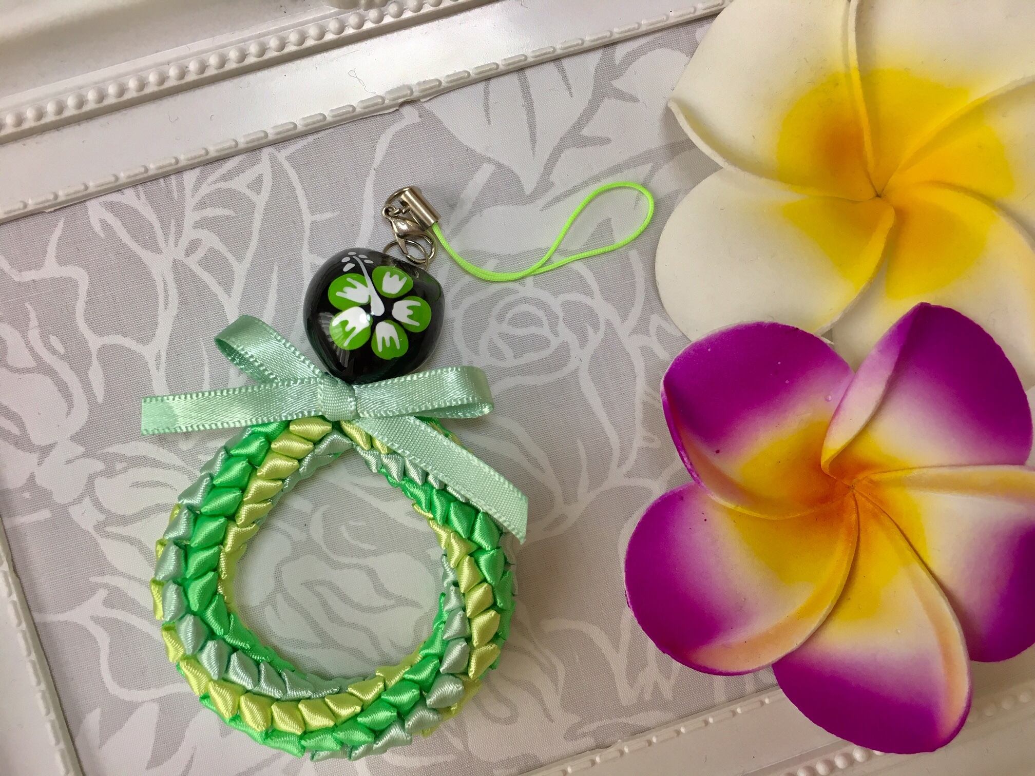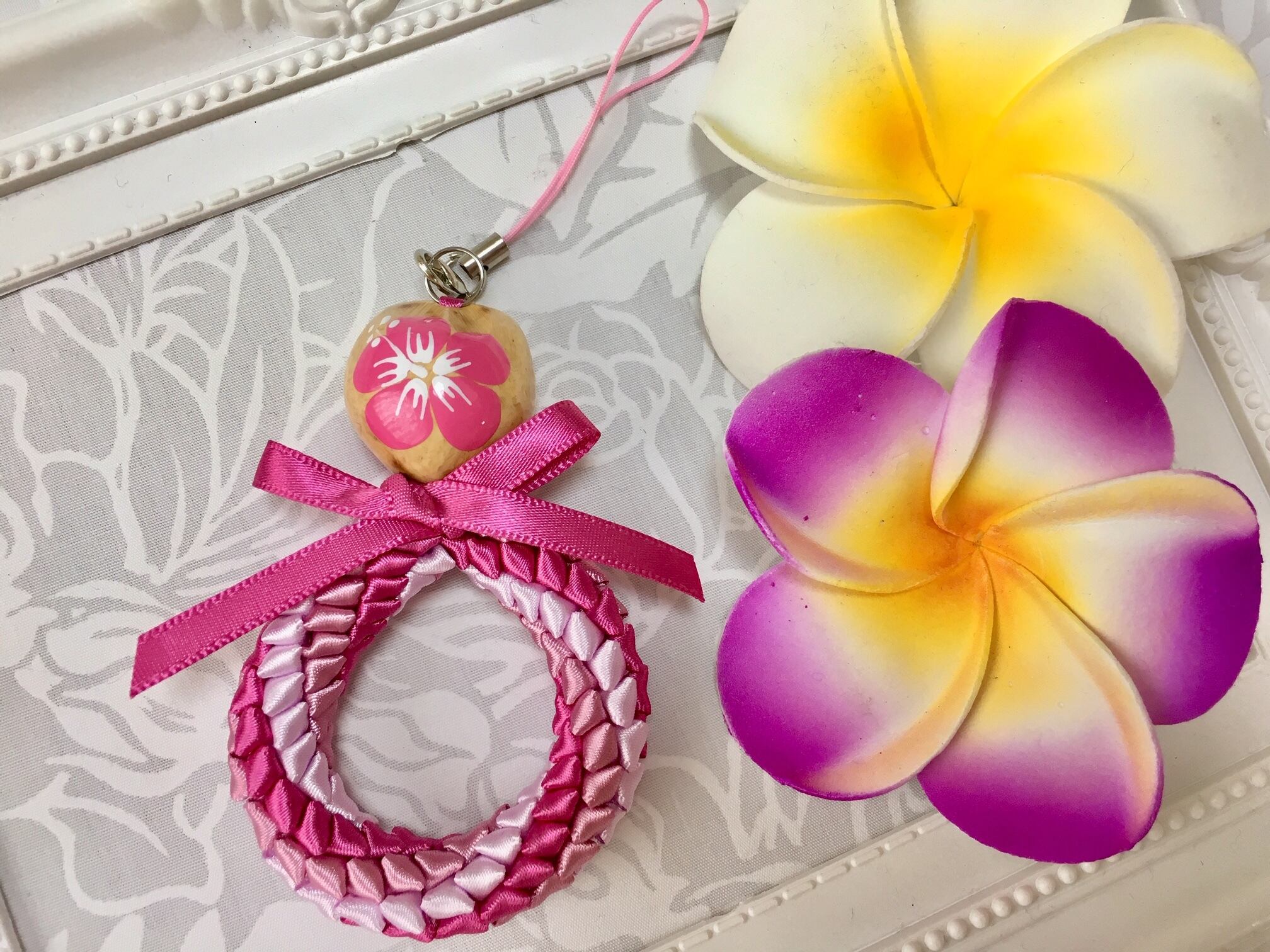ハワイアンリボンレイ【レフアペパ ストラップ】キットです。