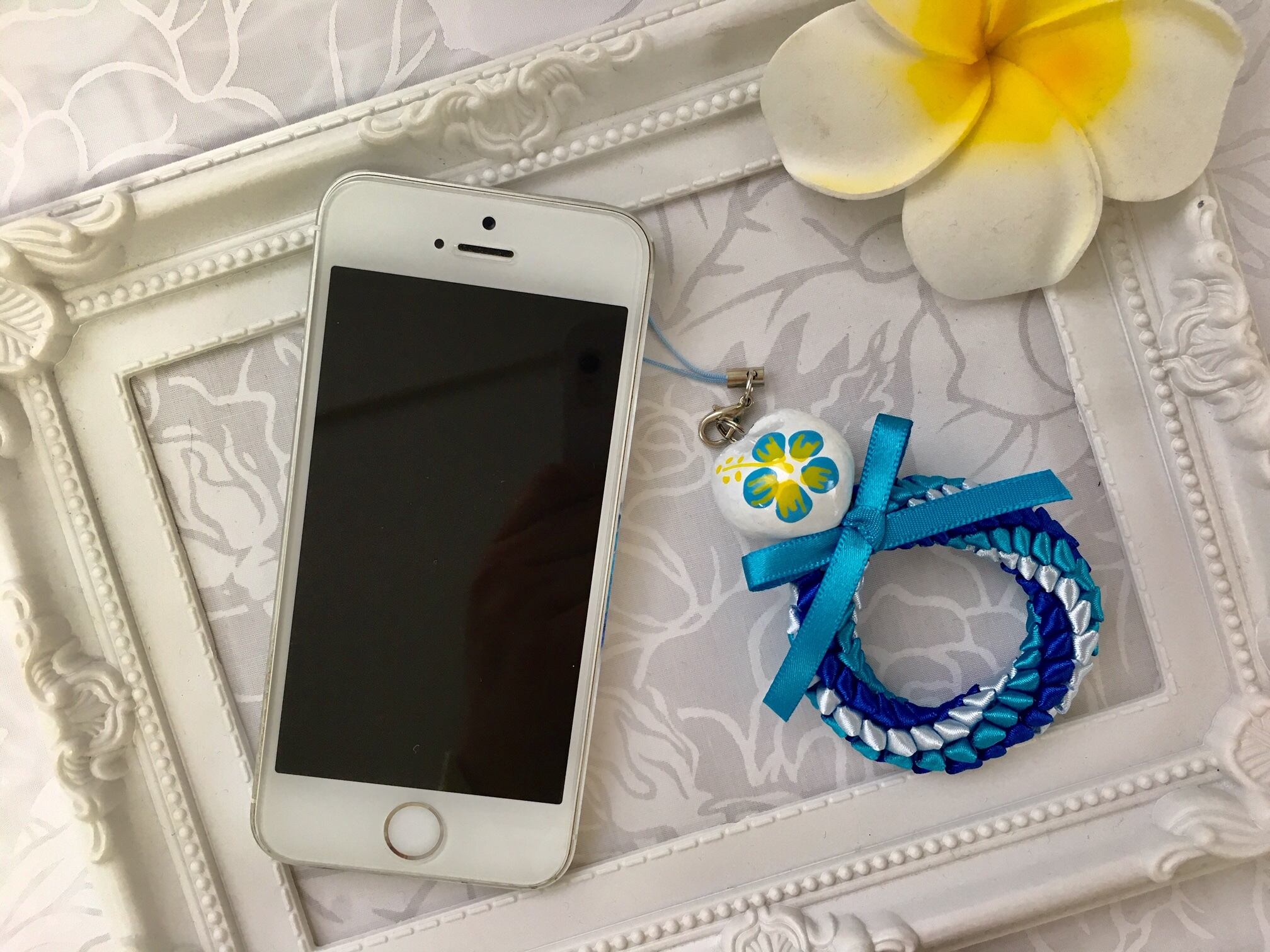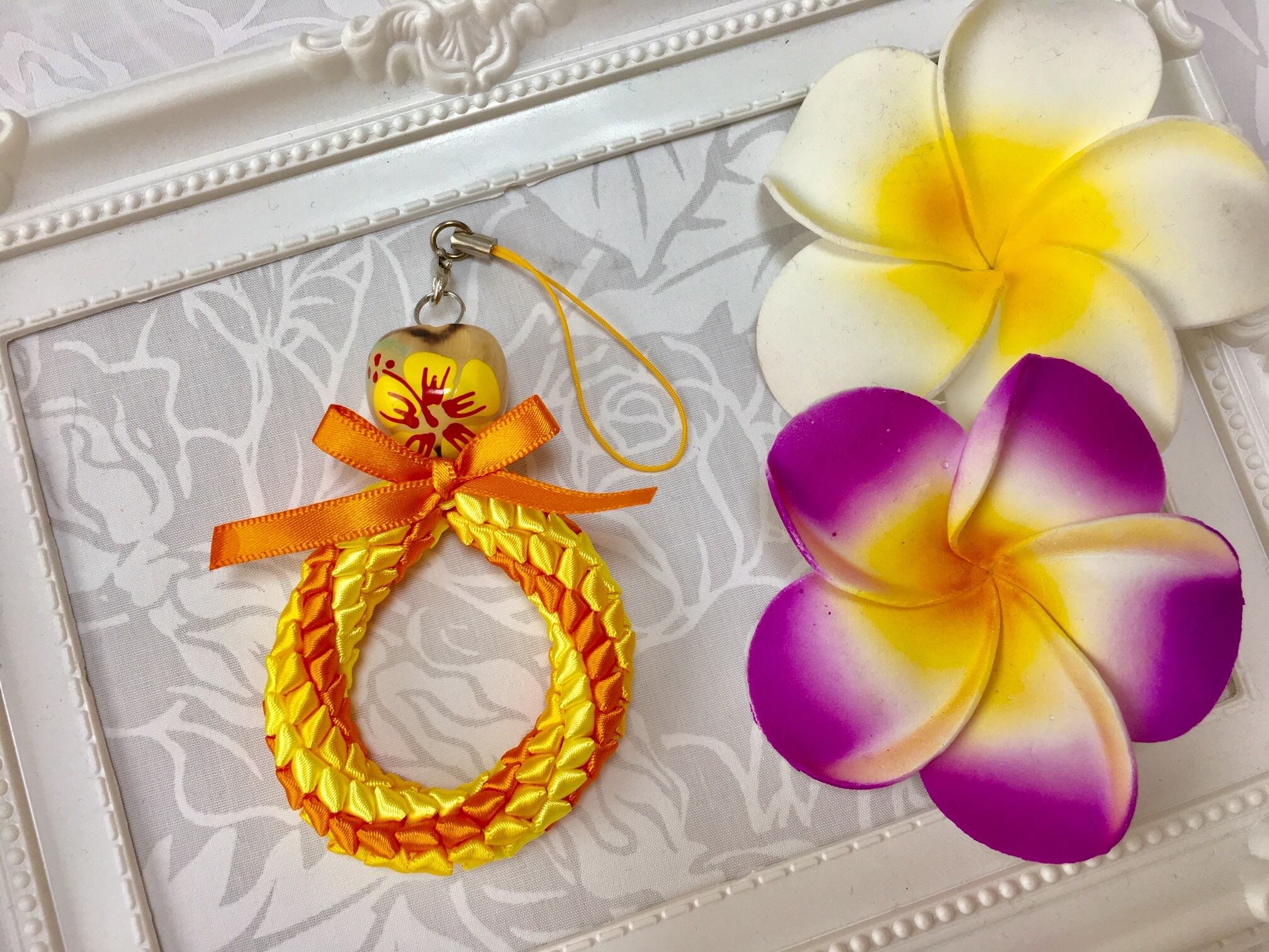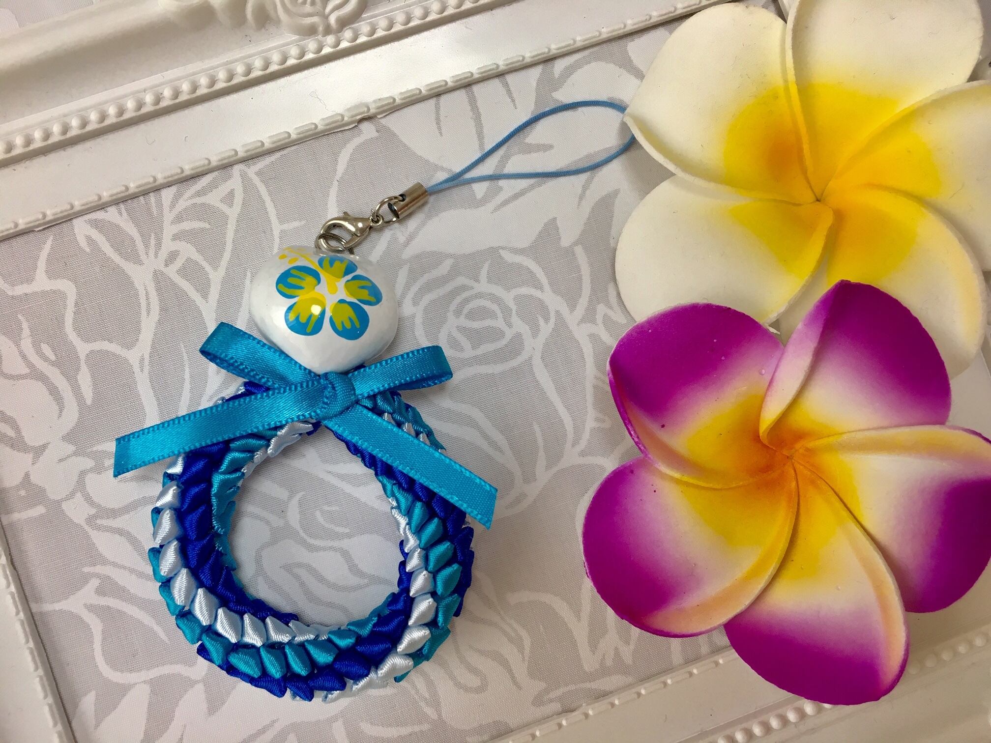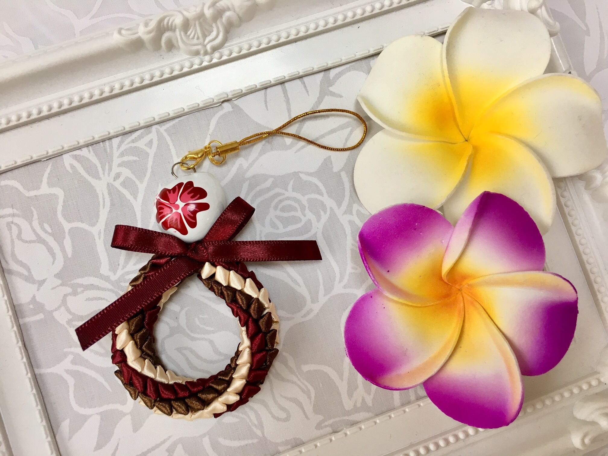 ハワイアンリボンレイ【レフアペパ ストラップ】キットです。