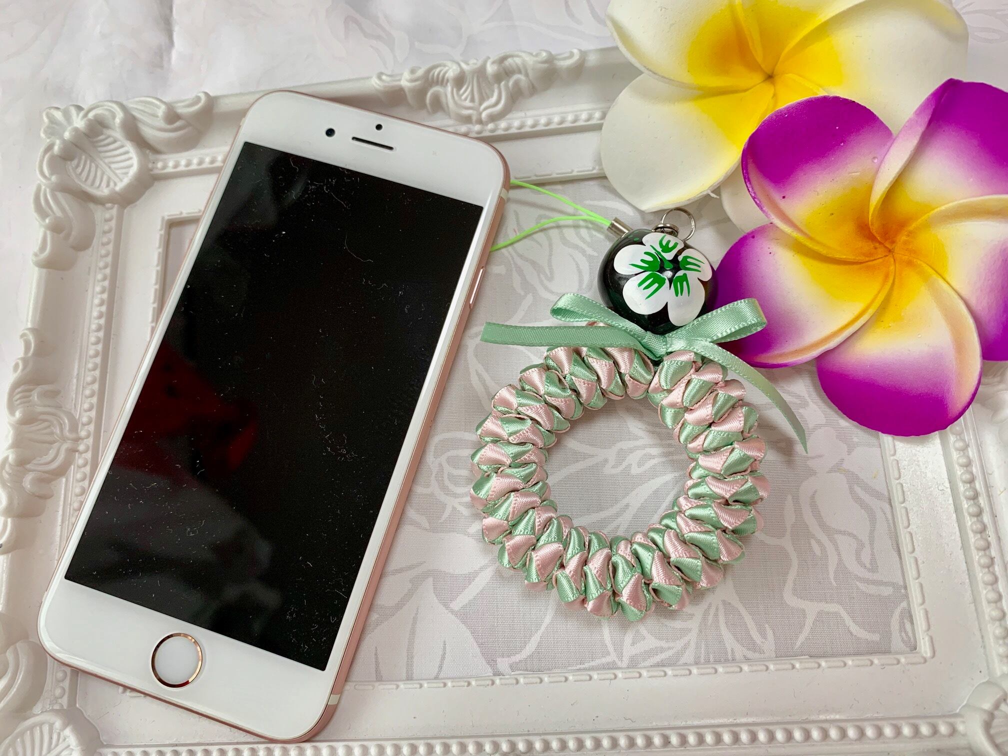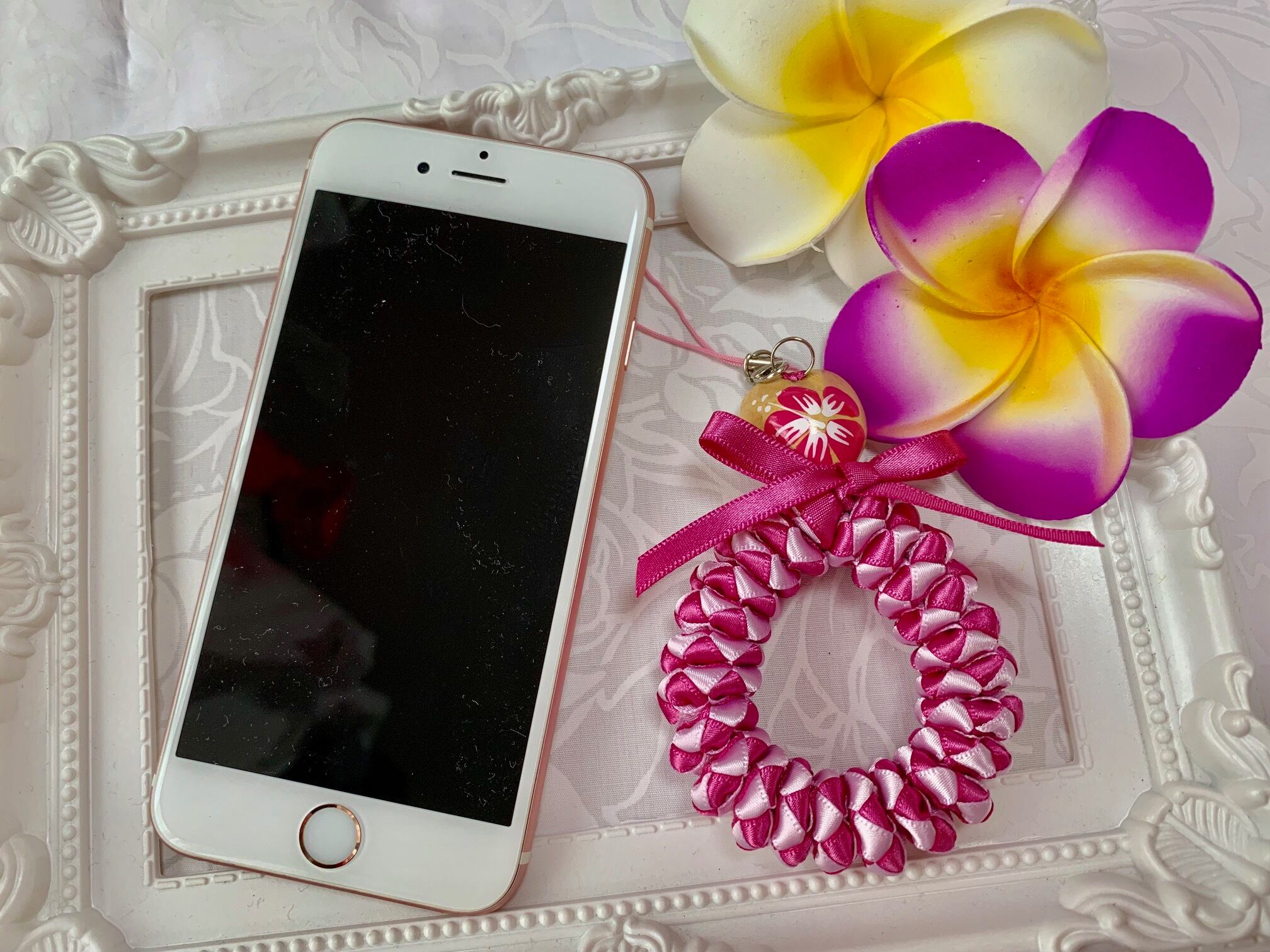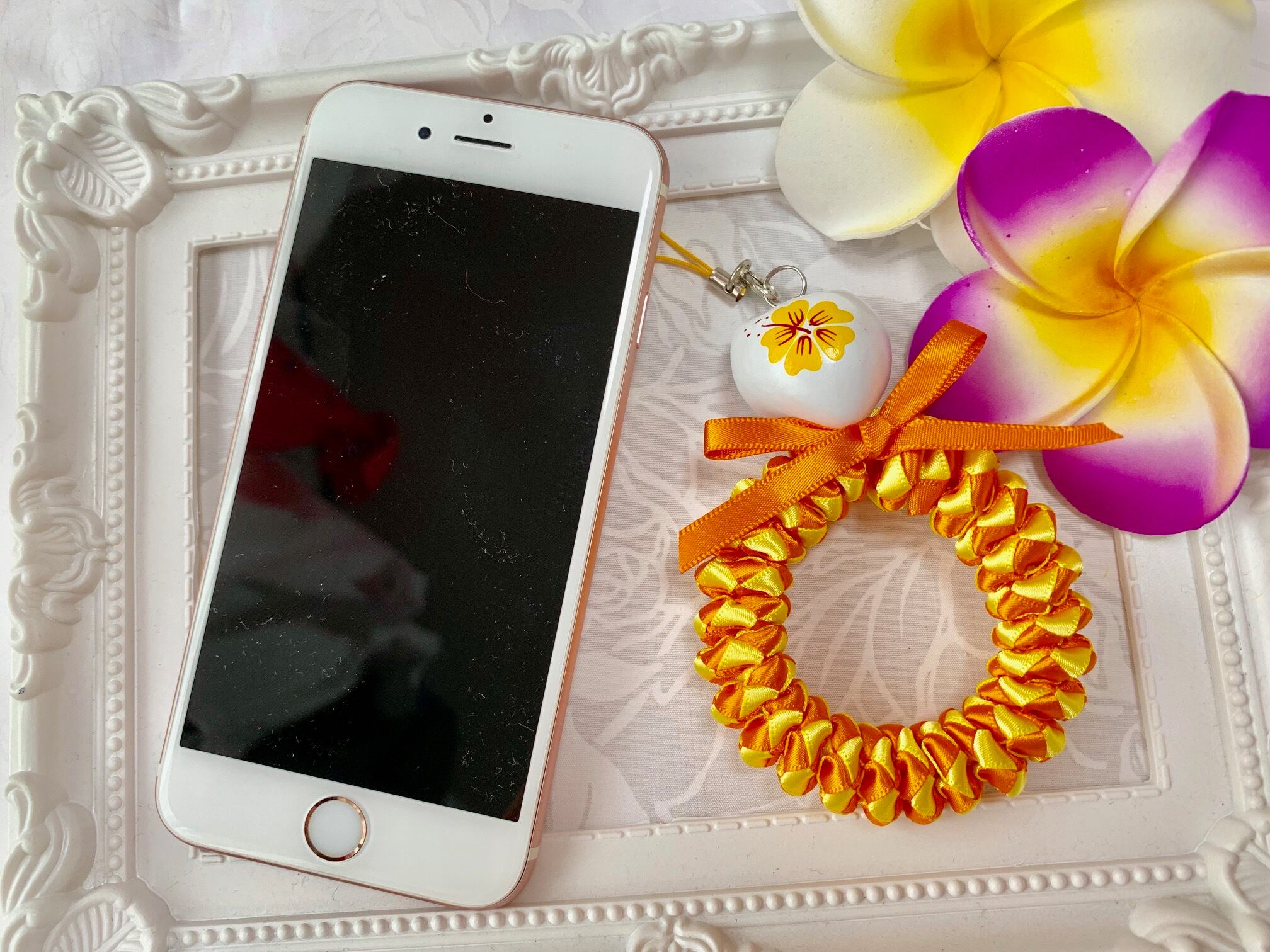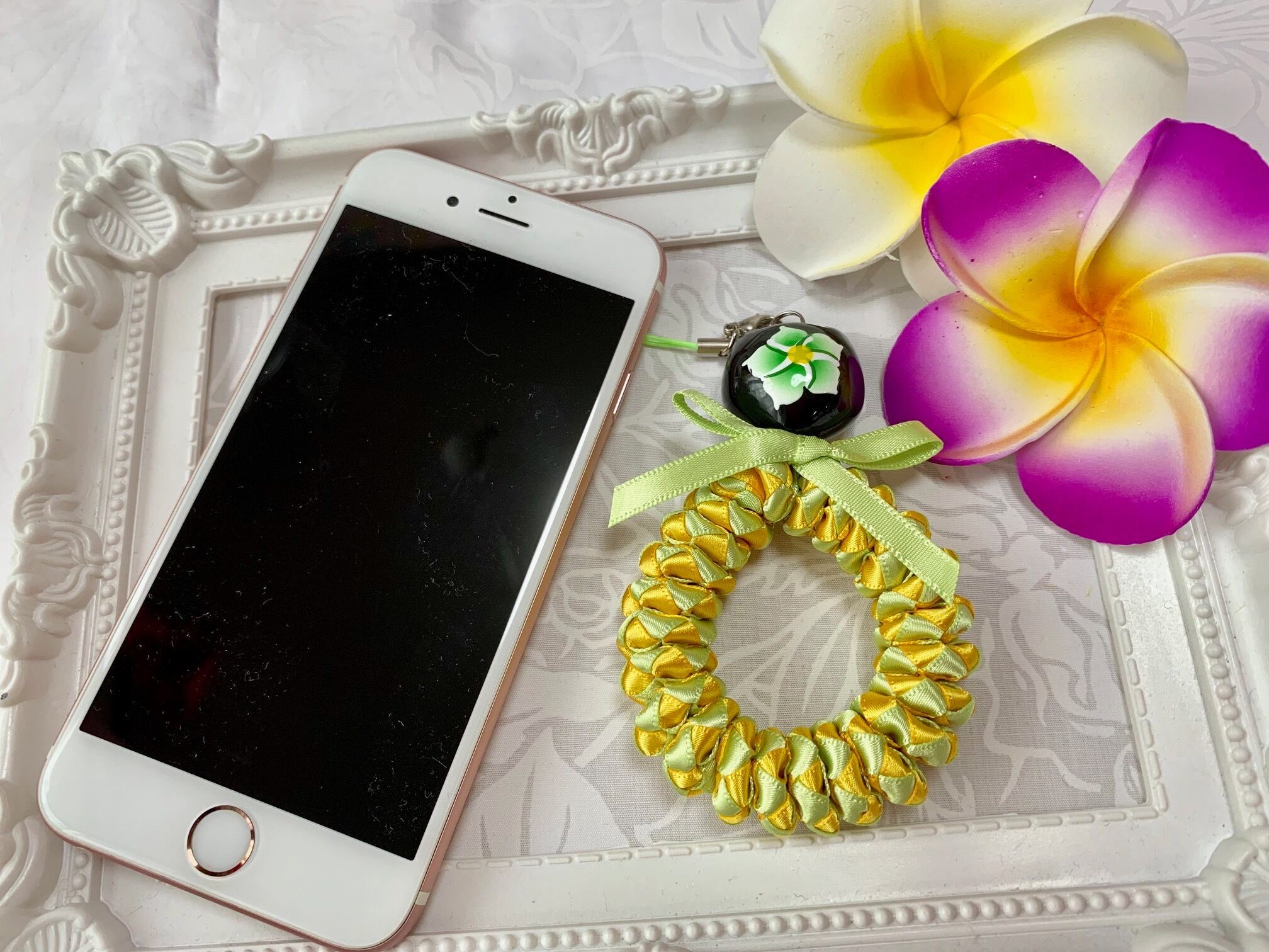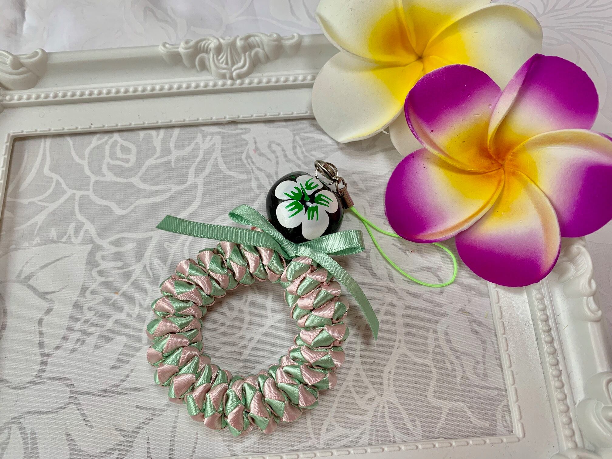 ◆リボンレイとは、レイを生花を使わず主にリボンやビーズ・造花などを使用して作るハワイアンクラフトです。レイはハワイの伝統的な装飾品で、ハワイに訪れた記念に観光客の首にかけられたり、日本ですとフラをされる方が身に着けたりするものと言えばわかりやすいかと思います。ハワイでは歓迎、誕生日、卒業式、結婚式などのお祝いにレイを贈り合います。