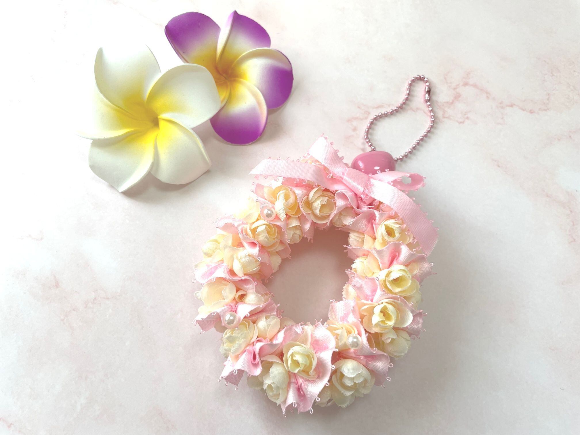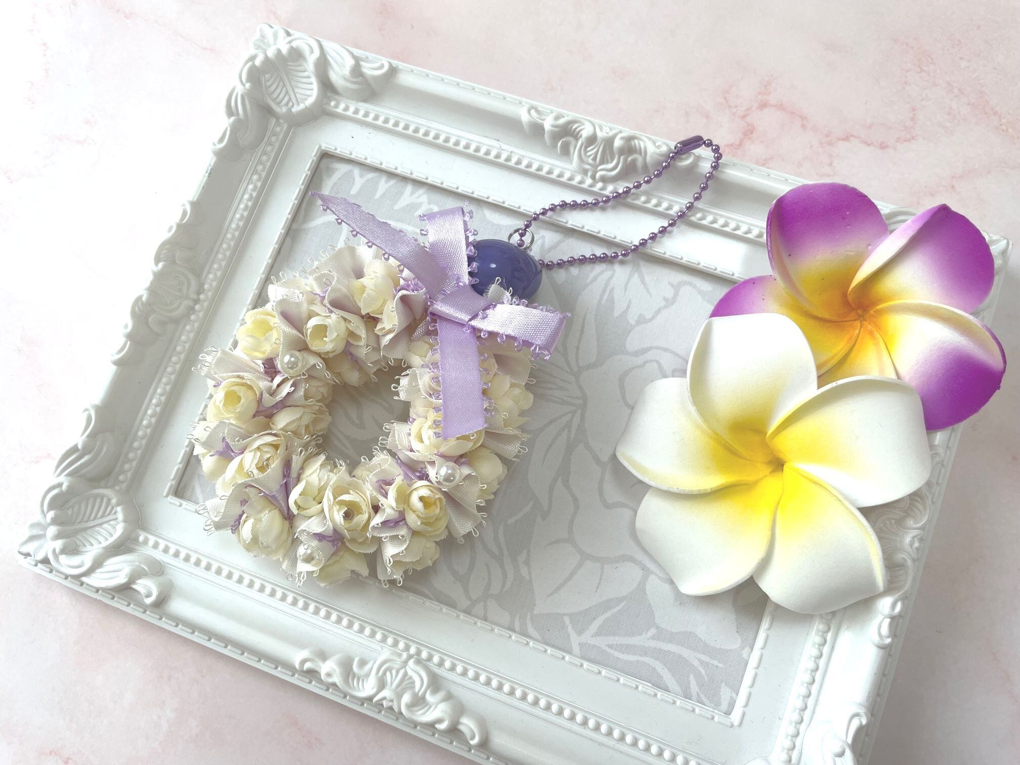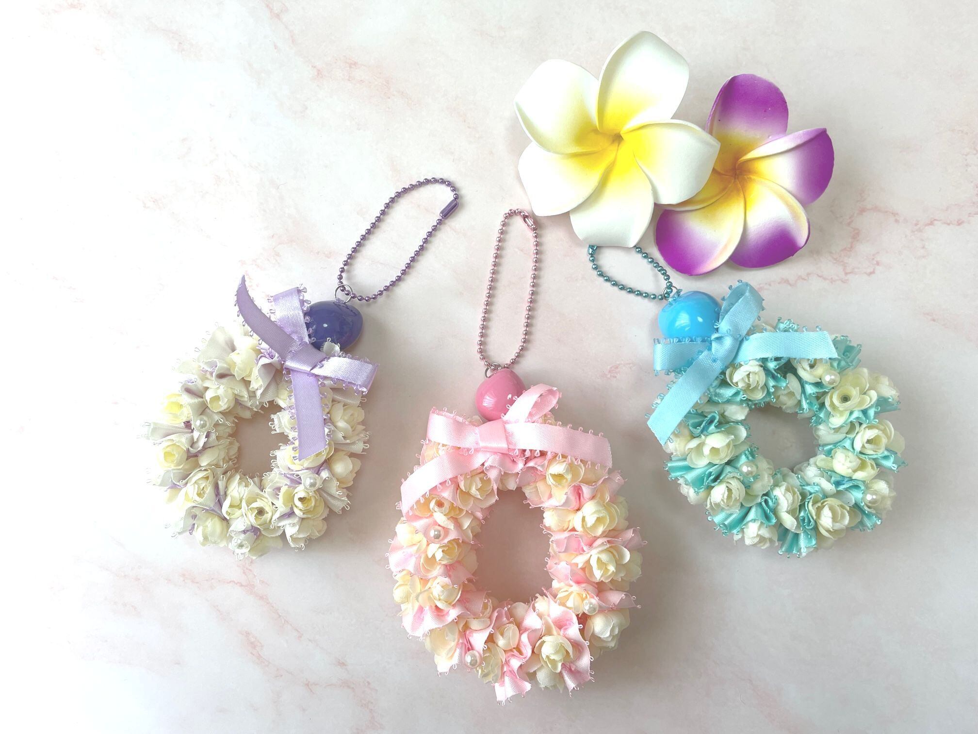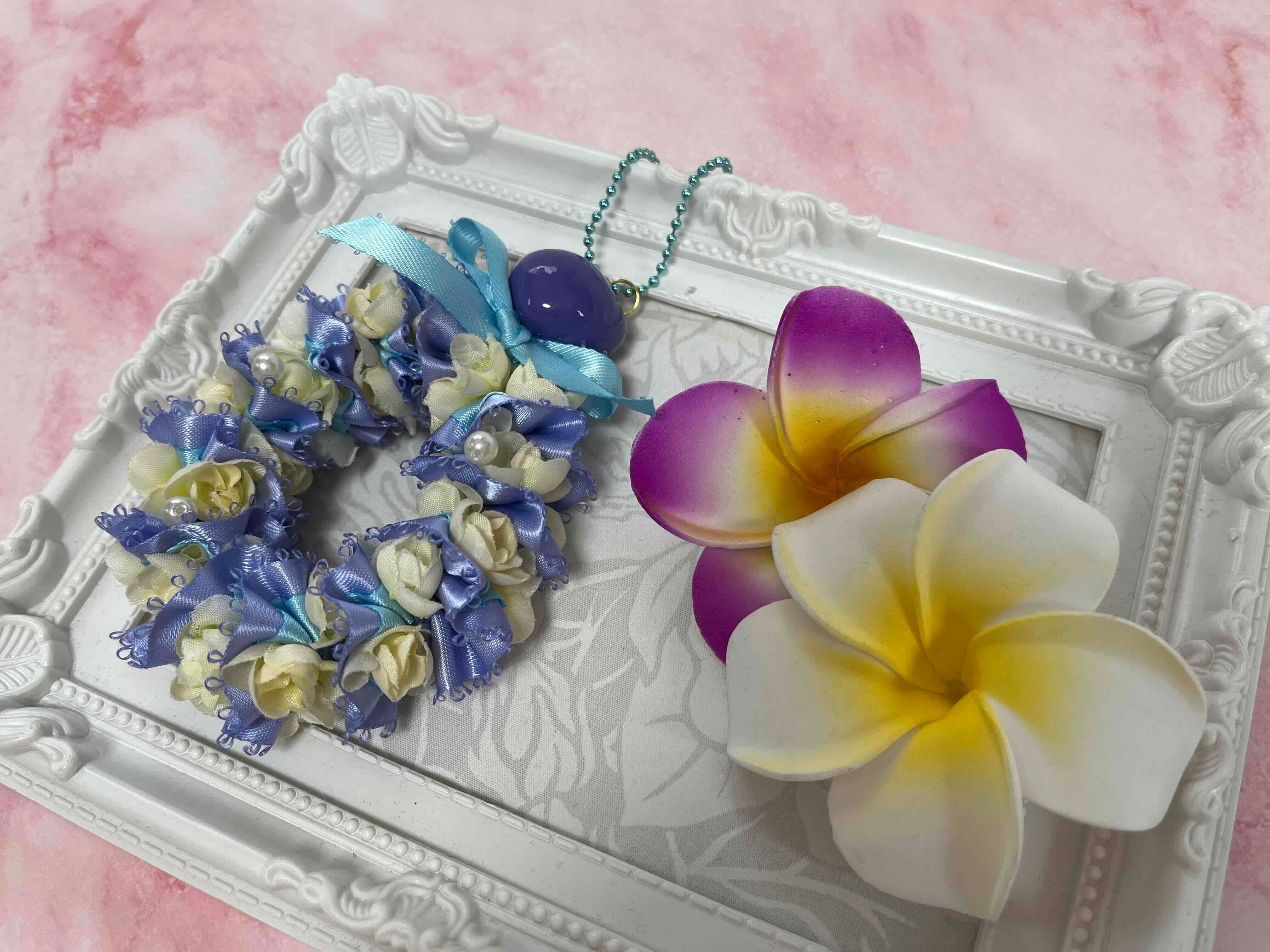 ◆リボンレイとは、レイを生花を使わず主にリボンやビーズ・造花などを使用して作るハワイアンクラフトです。レイはハワイの伝統的な装飾品で、ハワイに訪れた記念に観光客の首にかけられたり、日本ですとフラをされる方が身に着けたりするものと言えばわかりやすいかと思います。ハワイでは歓迎、誕生日、卒業式、結婚式などのお祝いにレイを贈り合います。
