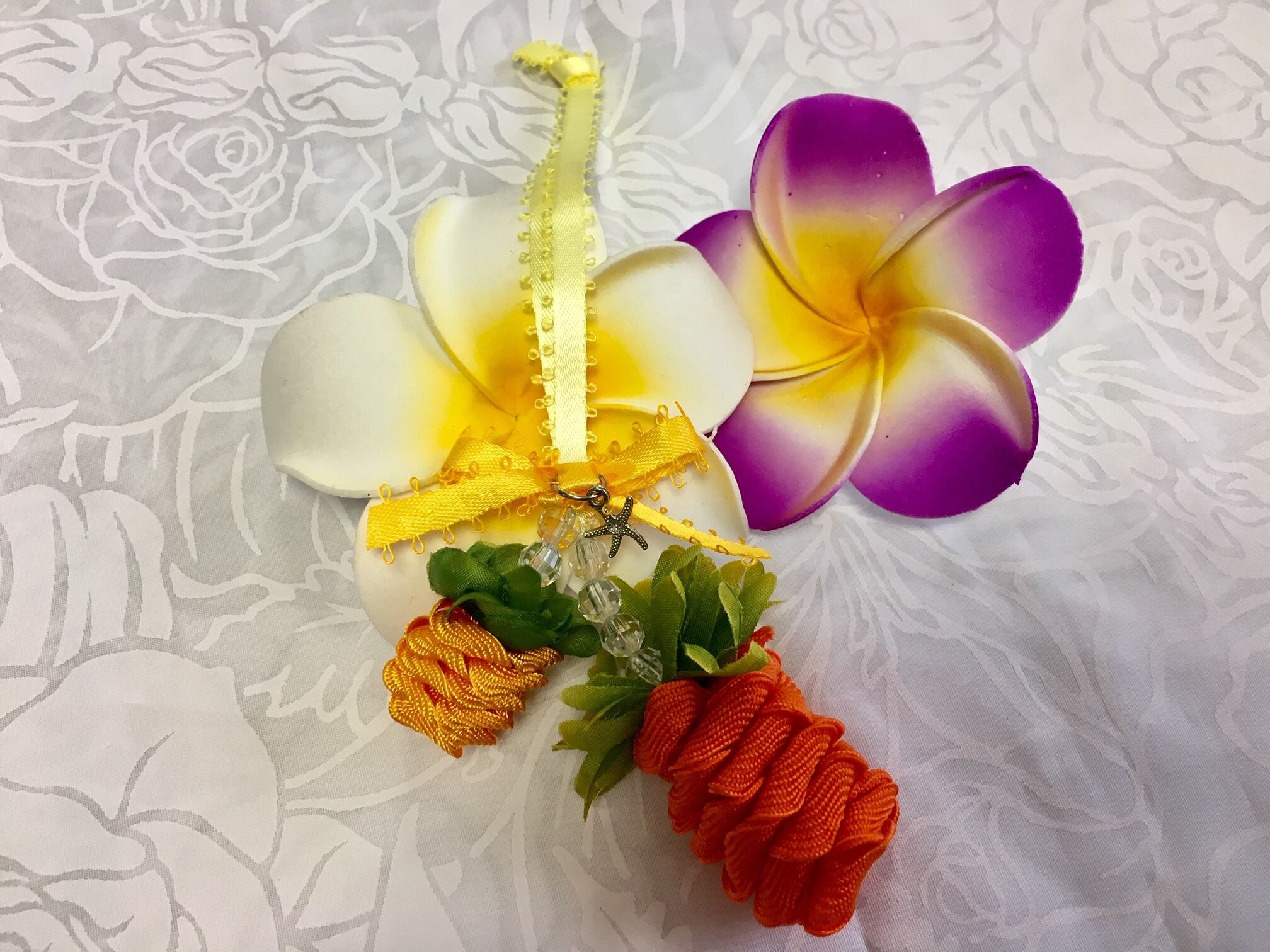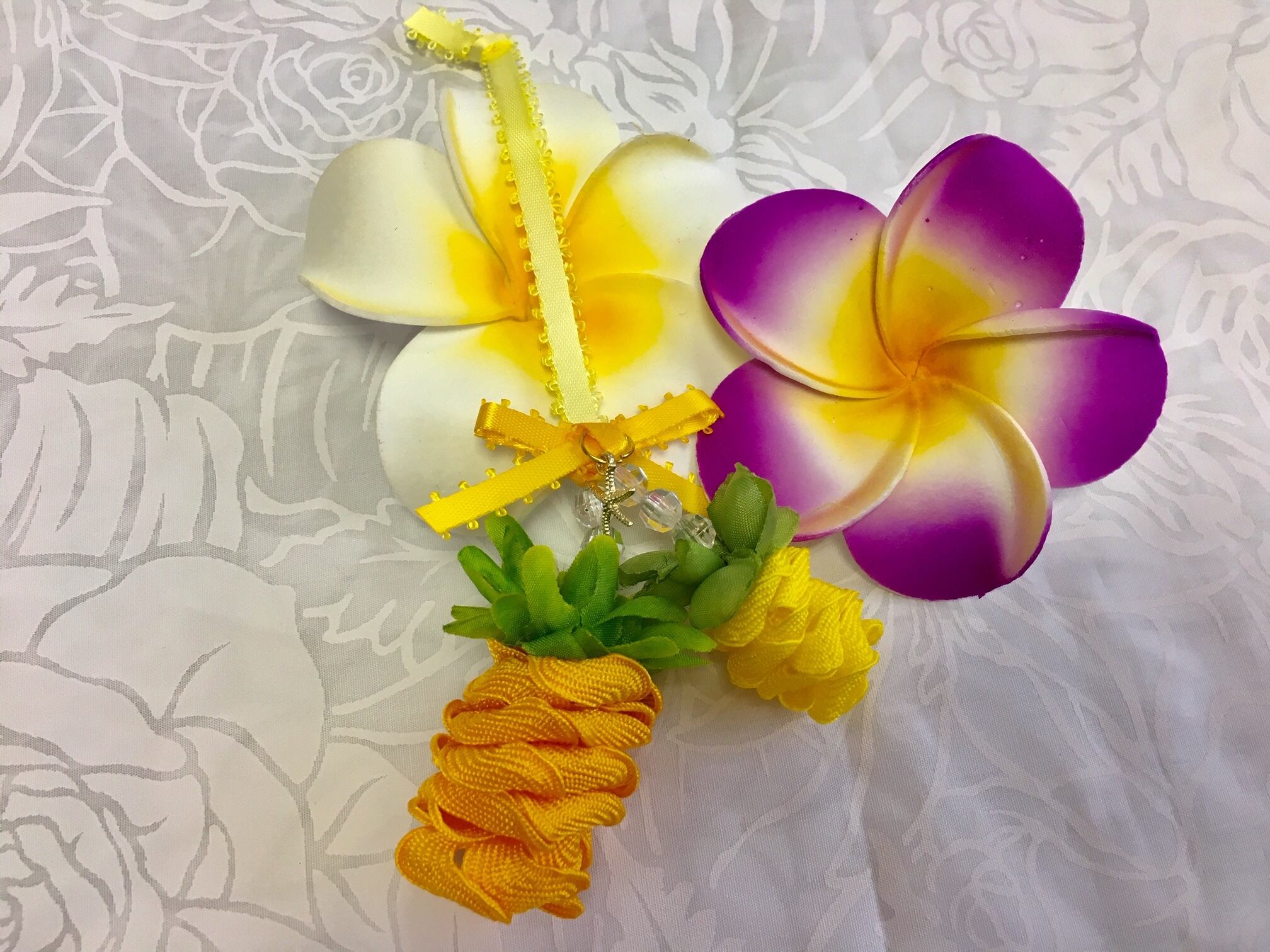 (レシピなし)【ダブルパイナップルチャーム キット♪ハワイアンリボンレイ】
