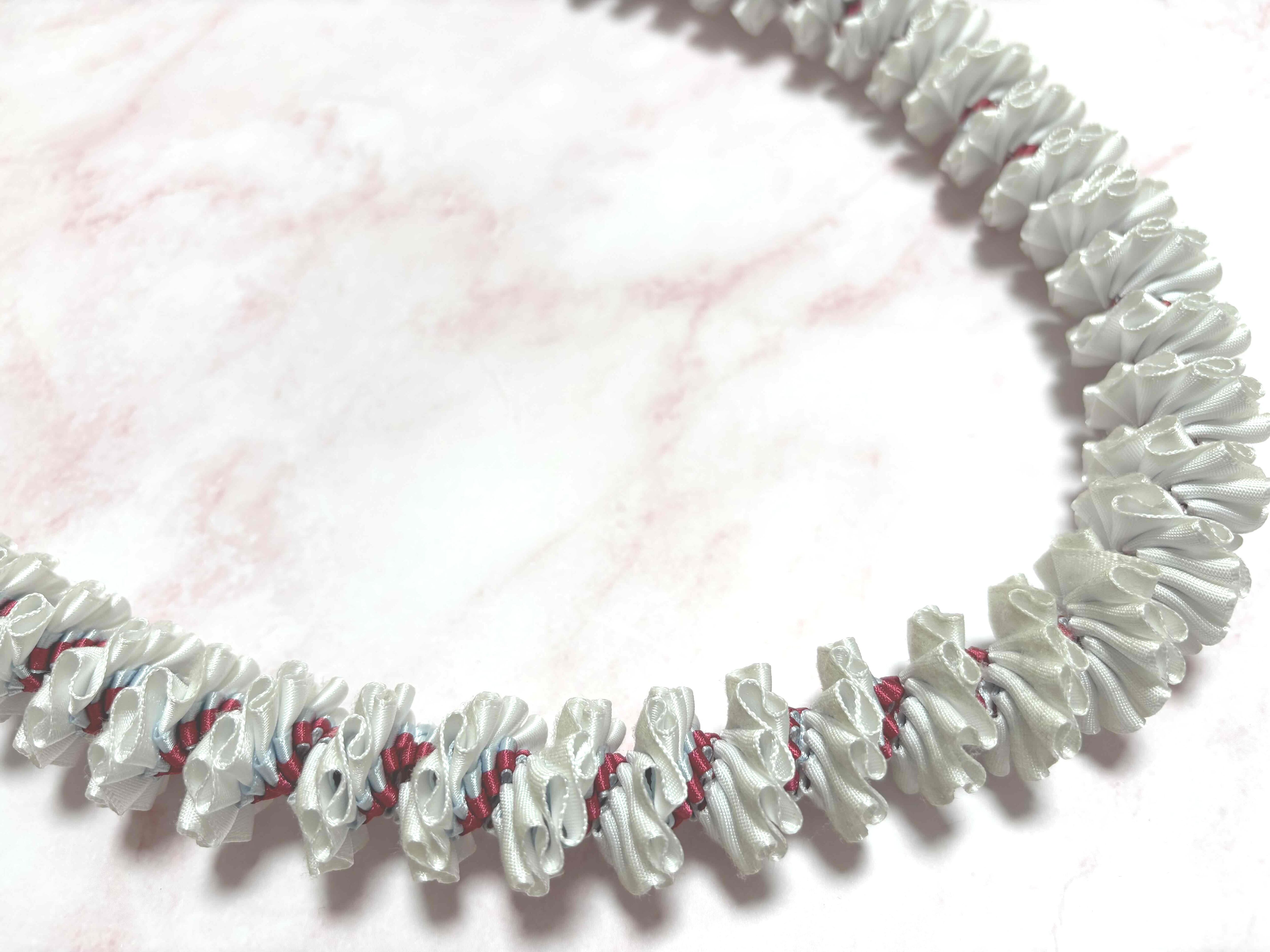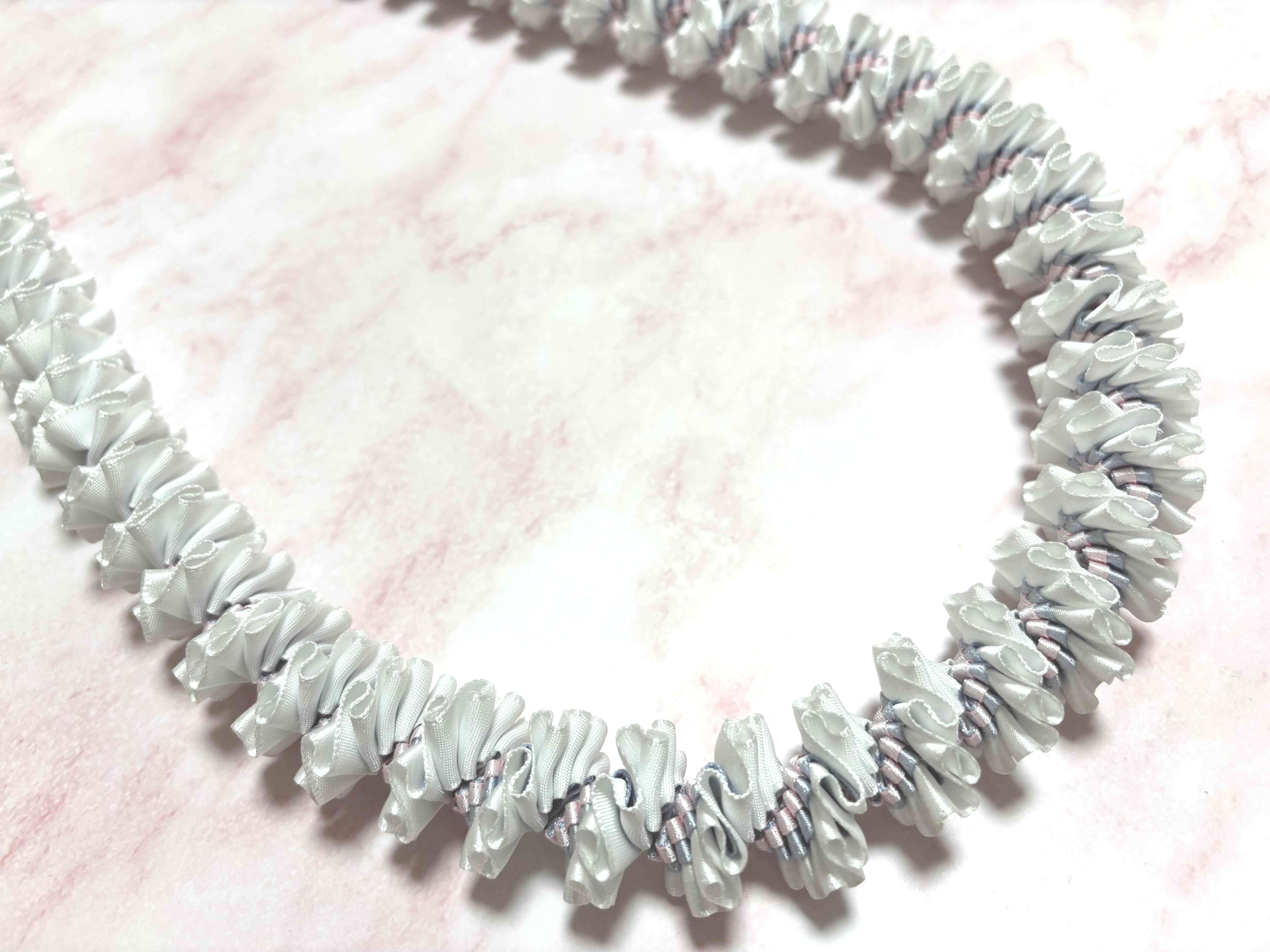 ◆リボンレイとは、レイを生花を使わず主にリボンやビーズ・造花などを使用して作るハワイアンクラフトです。レイはハワイの伝統的な装飾品で、ハワイに訪れた記念に観光客の首にかけられたり、日本ですとフラをされる方が身に着けたりするものと言えばわかりやすいかと思います。ハワイでは歓迎、誕生日、卒業式、結婚式などのお祝いにレイを贈り合います。