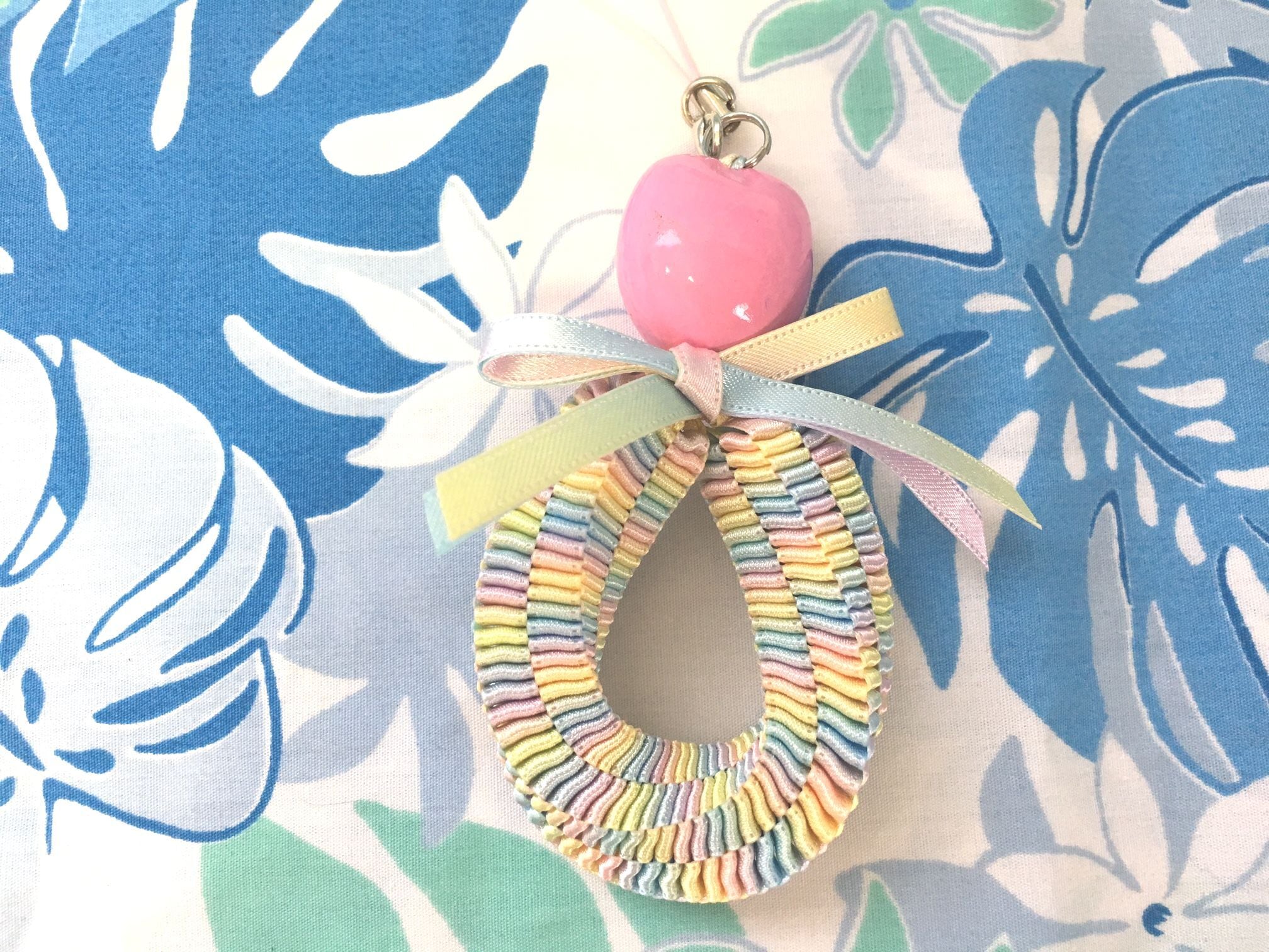 ◆リボンレイとは、レイを生花を使わず主にリボンやビーズ・造花などを使用して作るハワイアンクラフトです。レイはハワイの伝統的な装飾品で、ハワイに訪れた記念に観光客の首にかけられたり、日本ですとフラをされる方が身に着けたりするものと言えばわかりやすいかと思います。ハワイでは歓迎、誕生日、卒業式、結婚式などのお祝いにレイを贈り合います。